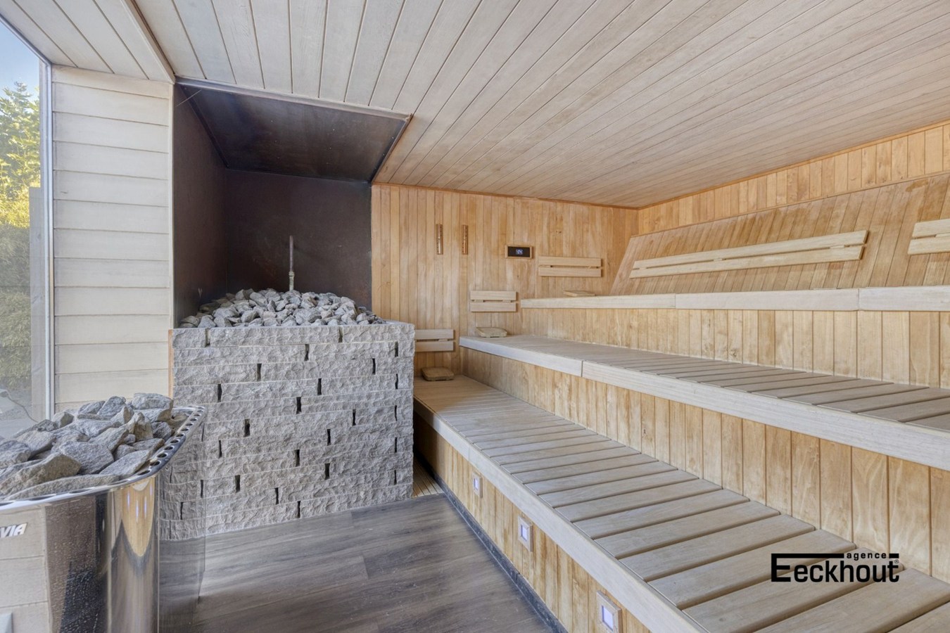 Het gelijkvloers bestaat momenteel uit een restaurant /verbruikzaal, keukenruimte met ruime berging/voorraad en kleedkamers. Er is tevens een binnenzwembad dat in rechtstreekse verbinding staat met een sauna, bio-sauna, 2 stoombaden, whirlpool en verzorgde sanitaire voorzieningen. Ook zijn er aparte ruimtes voorzien, momenteel als massage- en verzorgingsruimtes, die kunnen worden ingericht als bijkomende kantoor-/bureauruimte. Vanaf het binnenzwembad bieden grote raampartijen toegang tot dé grote troef van dit pand, de fantastische tuin met buitenzwembad en ligweide. Een oase van rust en privacy zonder inkijk.