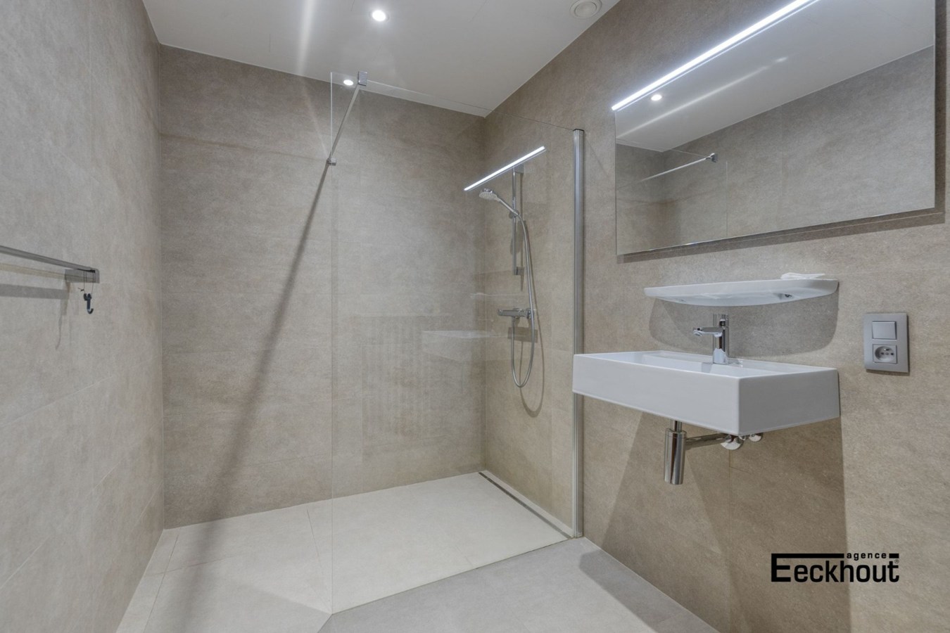 Op de eerste verdieping is er een nachthal met vestiairekast, een grote woonkamer, aparte keuken met terras, 2 volwaardige slaapkamers en een volledig vernieuwde badkamer.