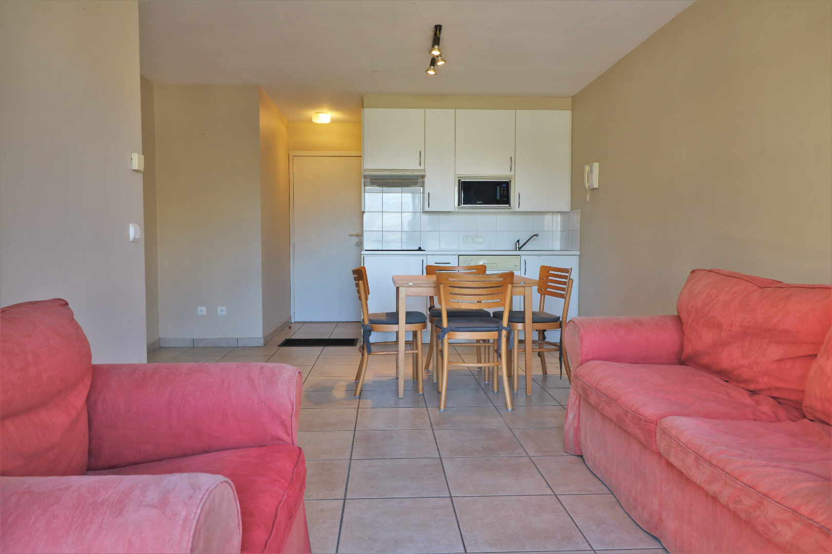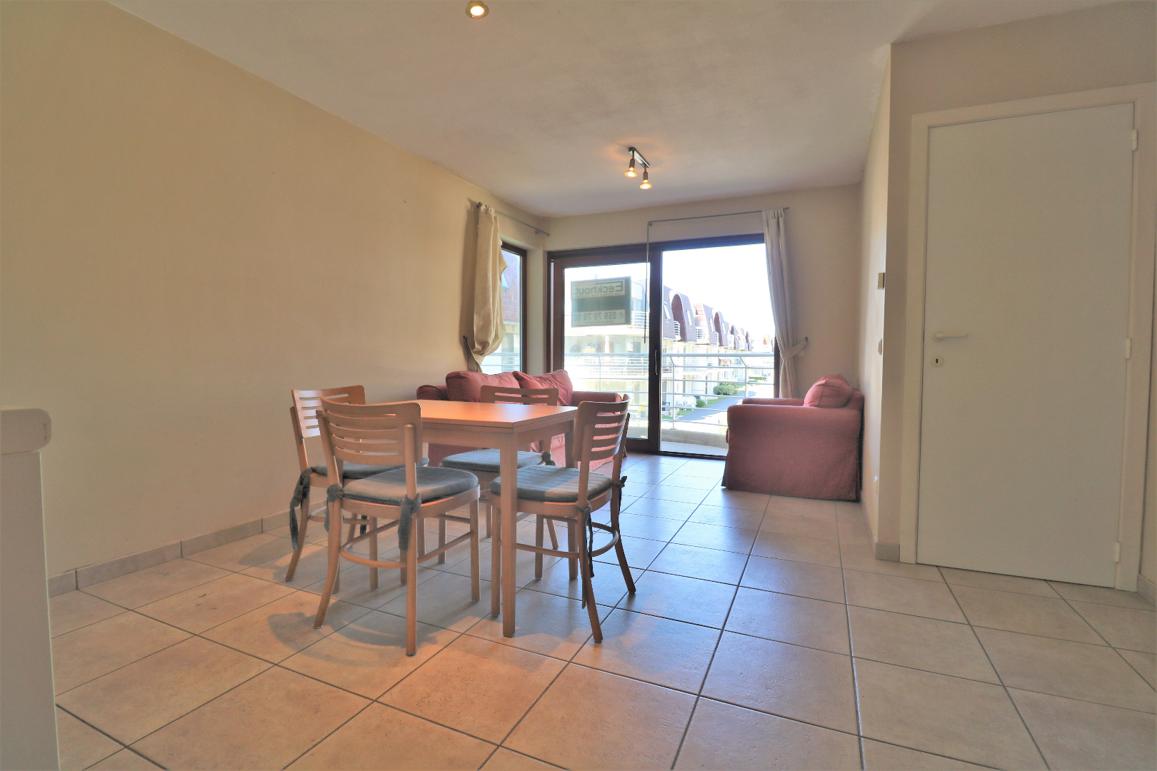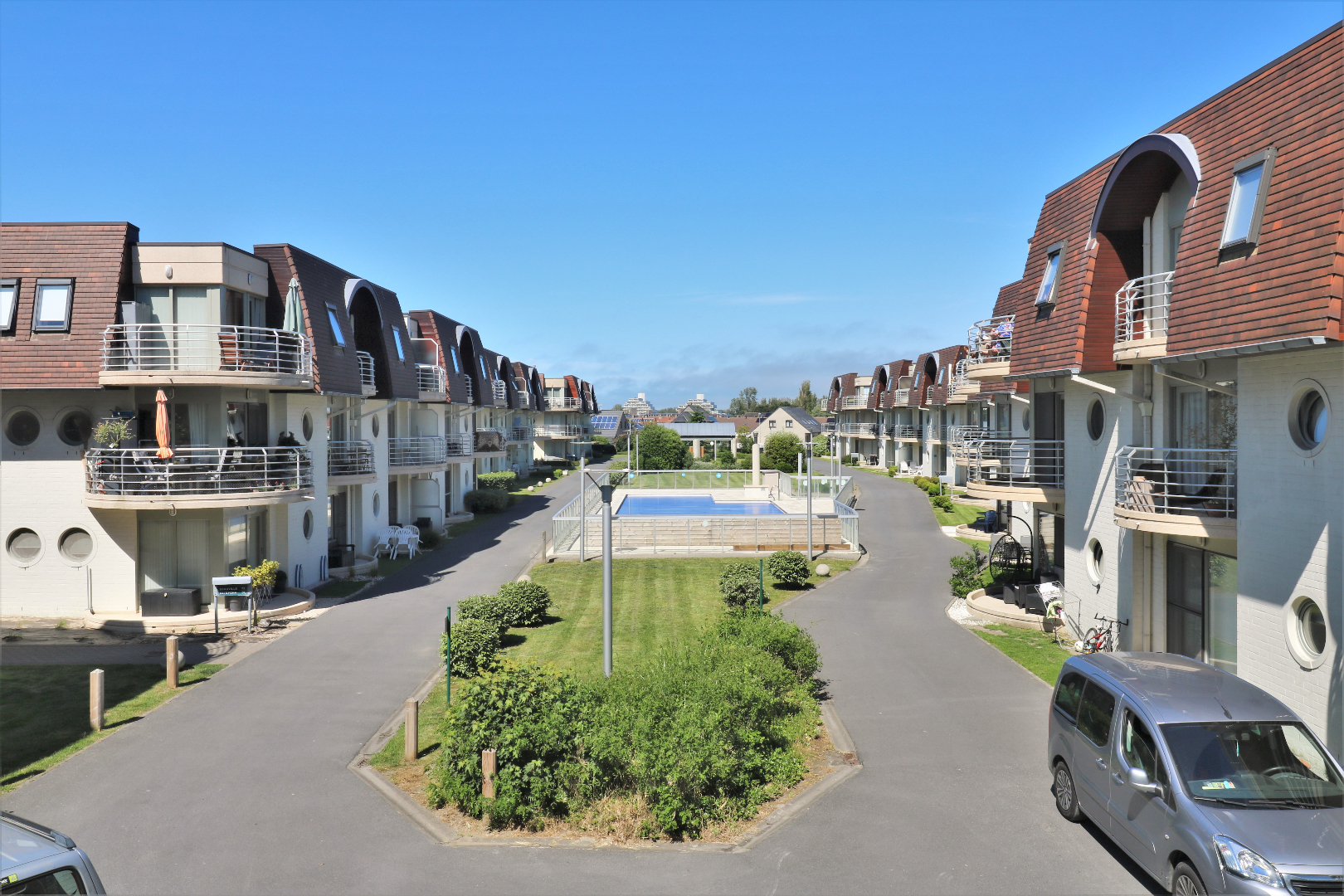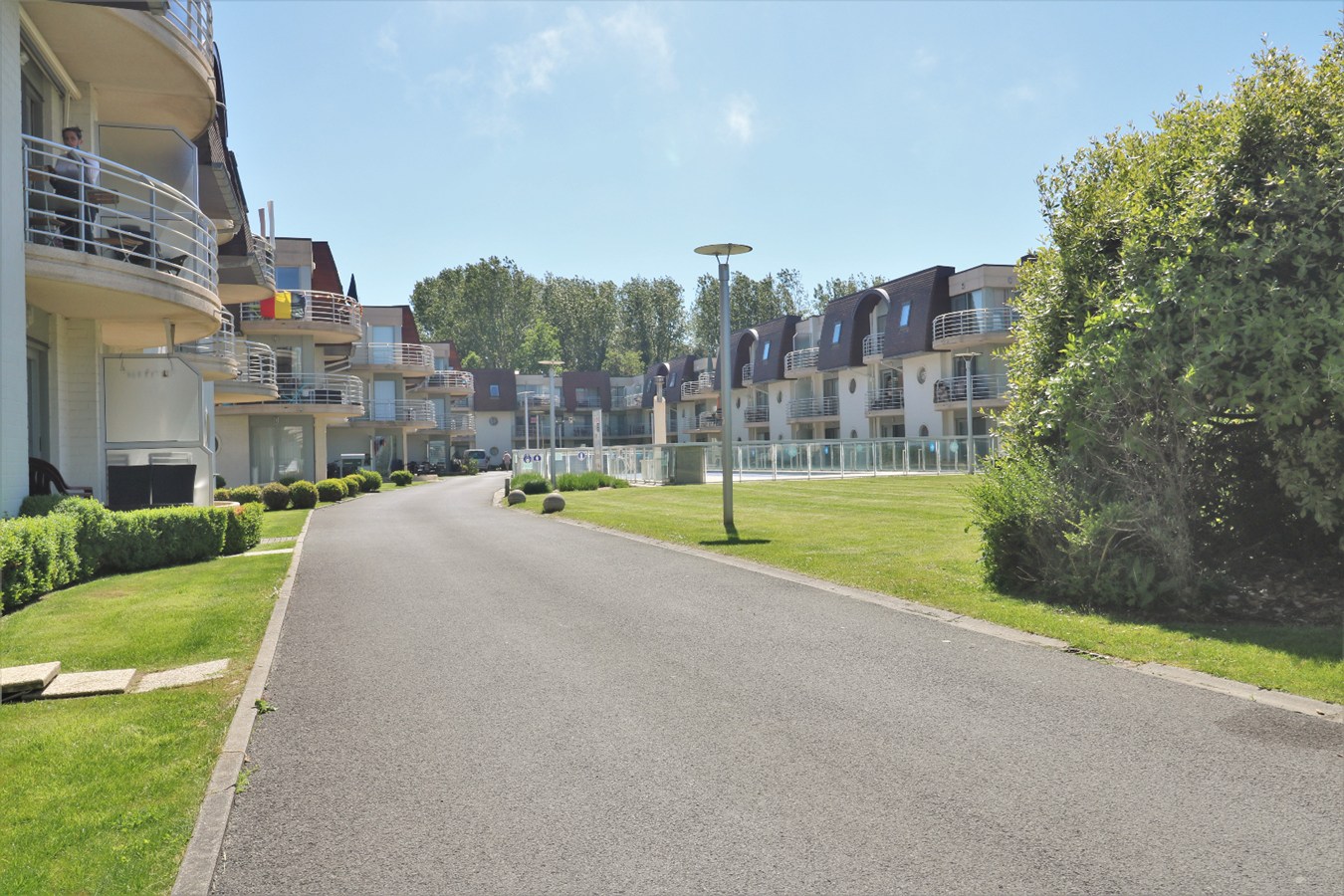 Gedeeltelijk gemeubeld appartement met ondergrondse garage gelegen op de eerste verdieping in het groenrijke en goed onderhouden domein 'Blutsyde'. Gelegen aan het natuurdomein D'heye en op 10 minuten stappen van strand en zee.