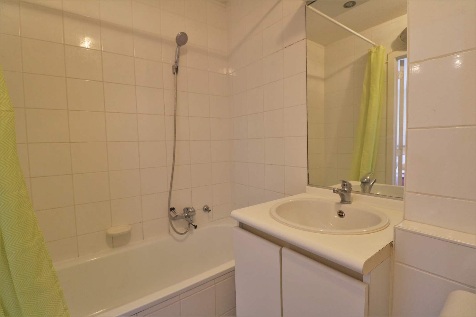 Indeling: leefruimte met open keuken, slaapkamer, badkamer met ligbad, lavabomeubel en toilet, berging en terras met verzicht.