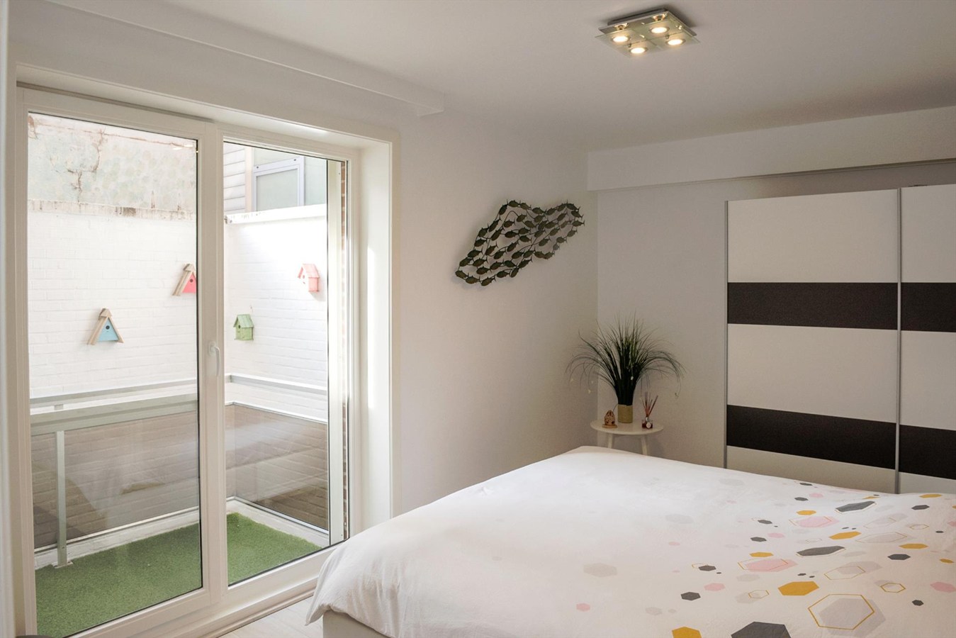 Videofoon en thermostaat zijn van op afstand te bedienen via de smartphone. Zowel voor als achteraan zijn de ramen voorzien van muggengordijnen en rolluiken aan de slaapkamers.
