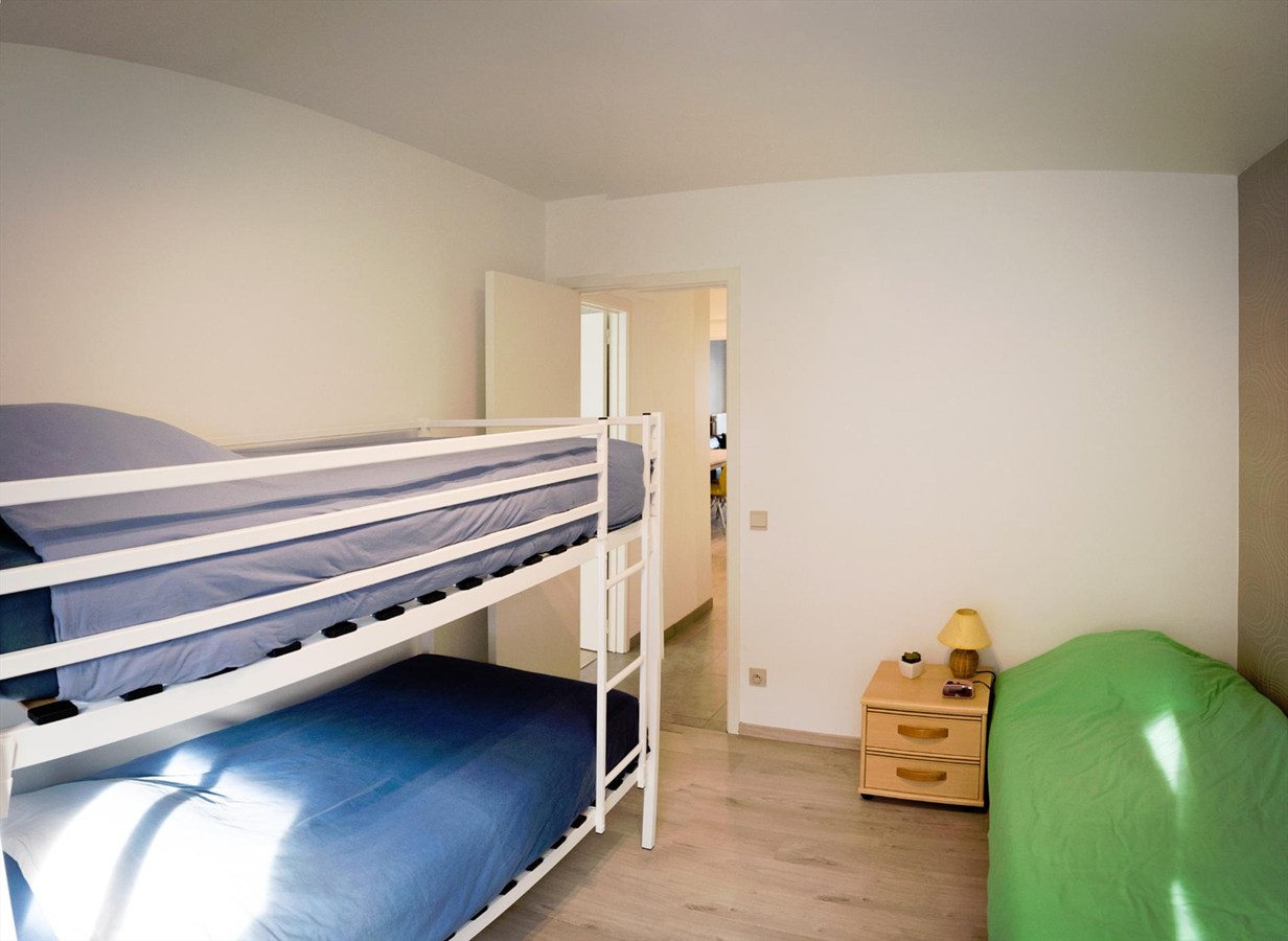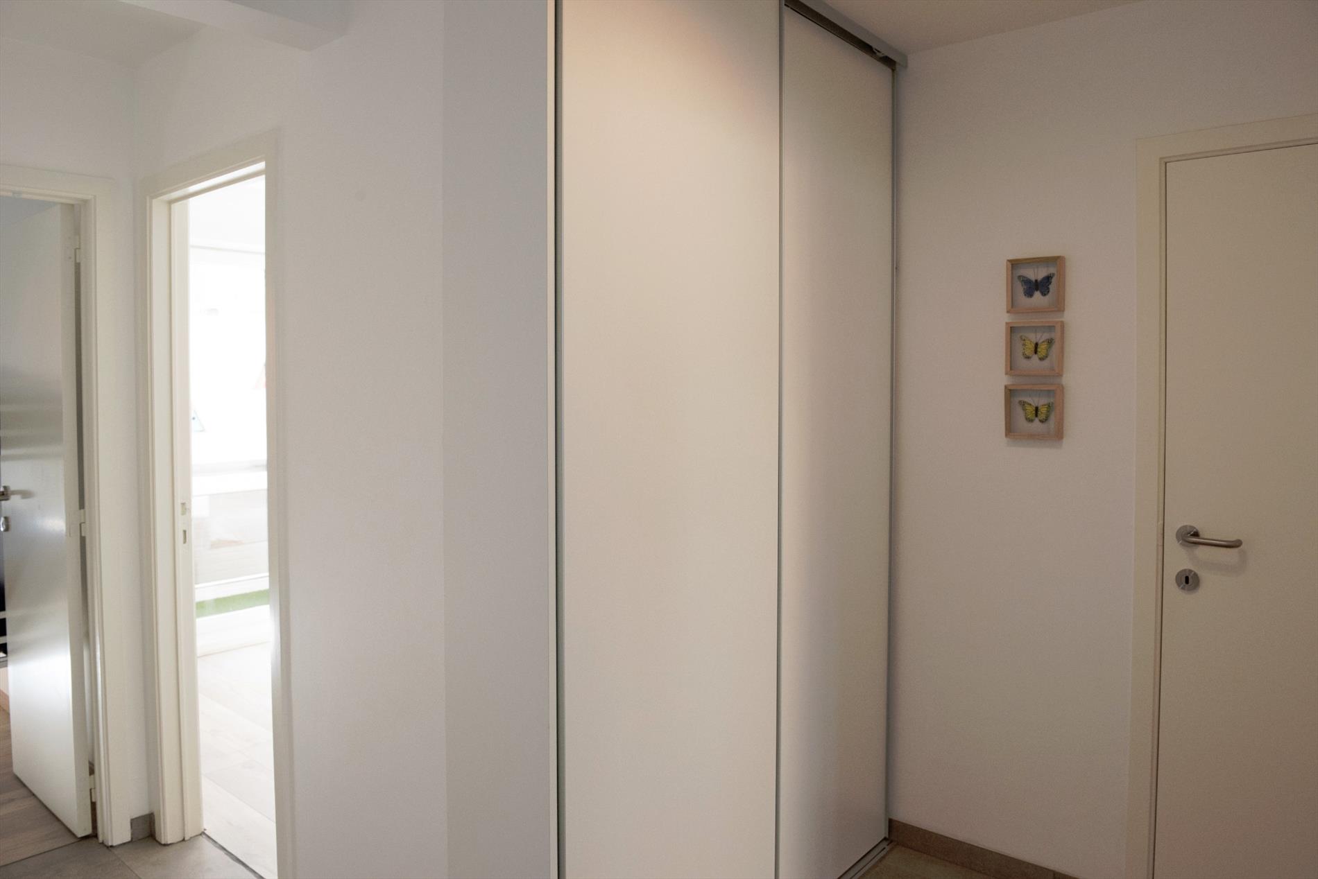 Indeling: Inkomhal met gepantserde inkomdeur en vestiairekast, ruime en gezellige leefruimte, volledig geïnstalleerde half-open keuken met aansluitende berging en terrasje, 2 volwaardige slaapkamers met elk hun eigen terras, badkamer met inloopdouche en lavabomeubel, apart toilet met douchecabine.