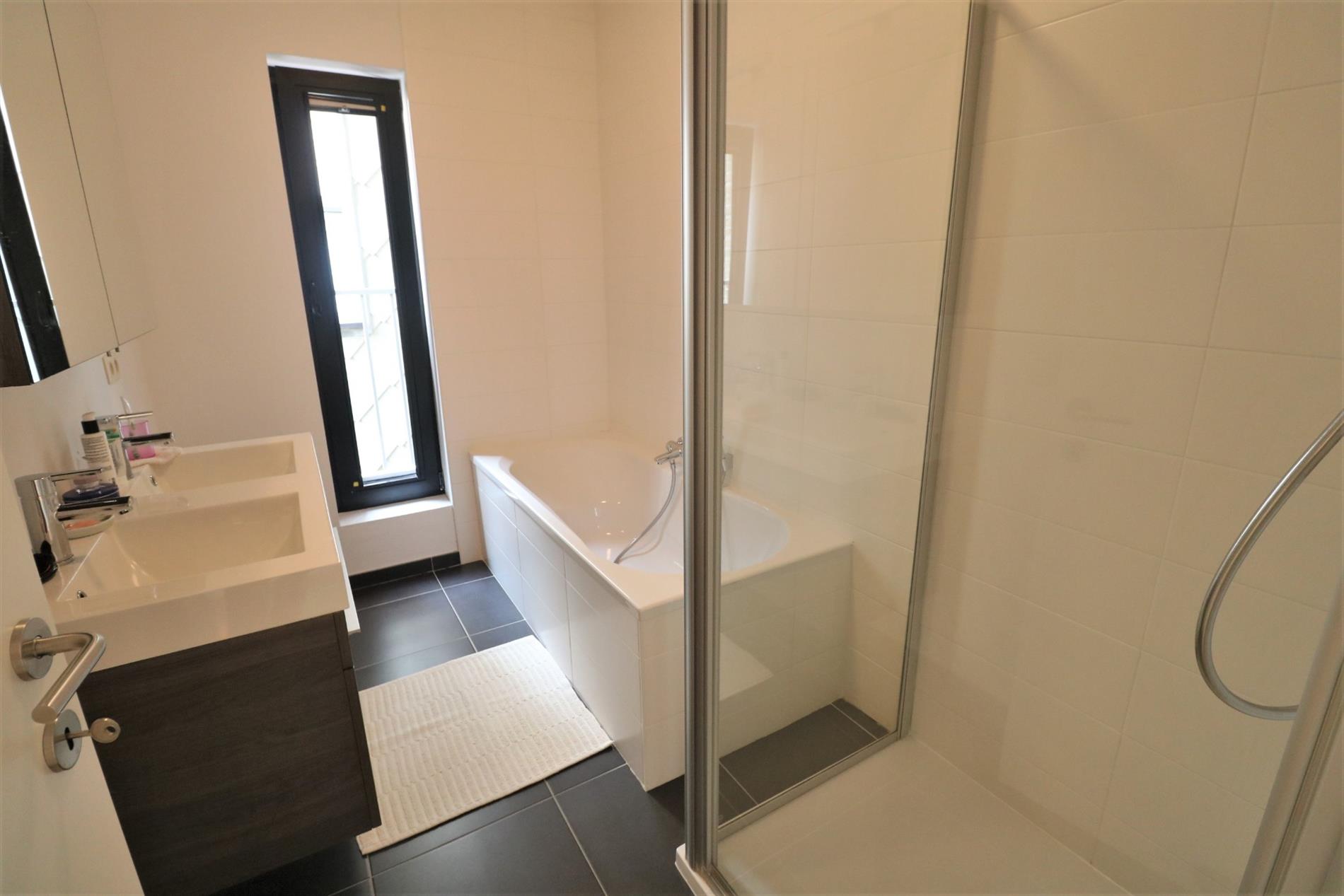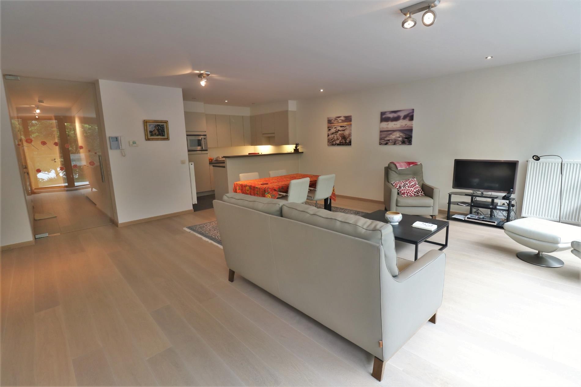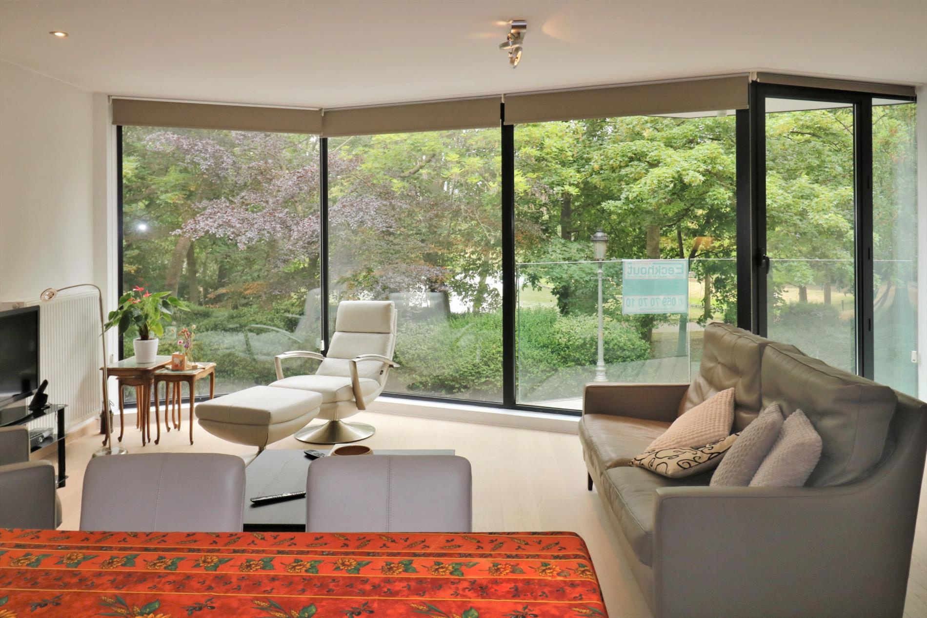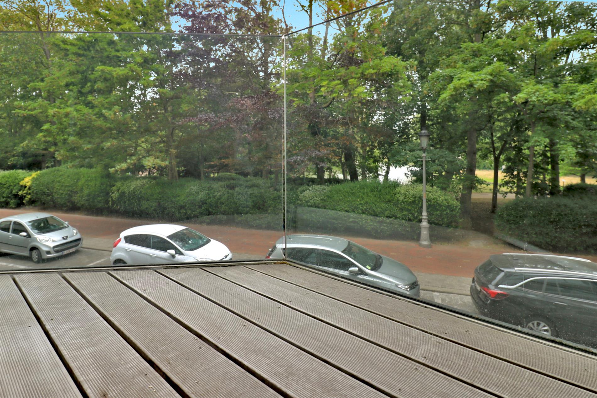 Omschrijving: Ruime inkomhal met ingemaakte kasten en gastentoilet, een brede glazen deur verbindt de hal met de lichtrijke living, vooraan een terras met een prachtig open zicht op het park, een volledig geïnstalleerde open keuken, aansluitend een berging, badkamer met dubbel lavabomeubel, ligbad en stortbad, 2 ruime slaapkamers, ruim & open zonneterras achteraan. Er is overal duurzaam parket voorzien. Een pareltje in het volle centrum maar toch rustig gelegen aan het stadspark!