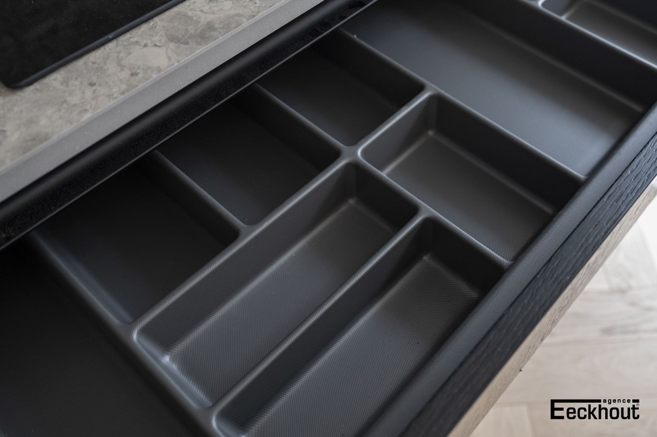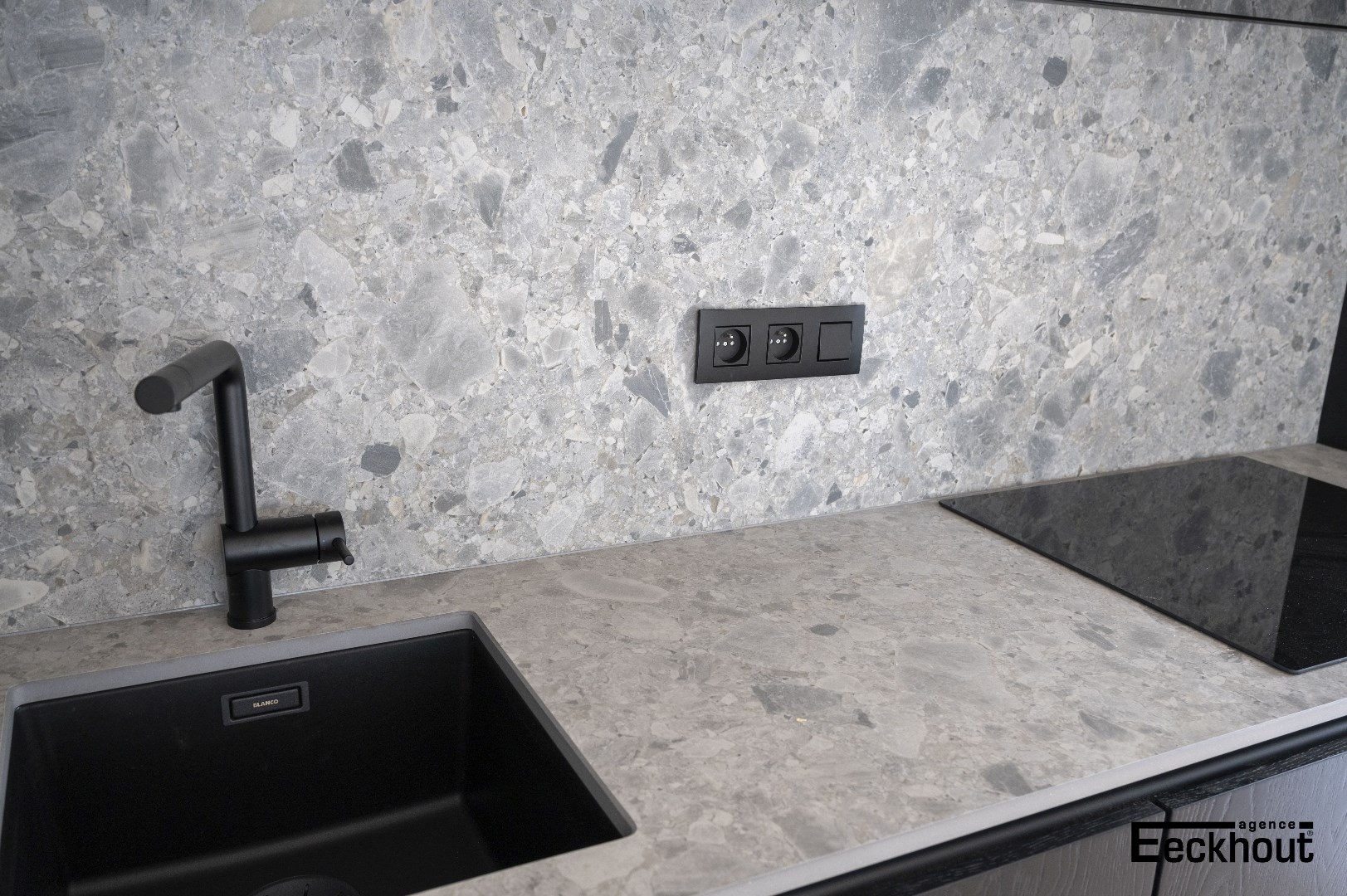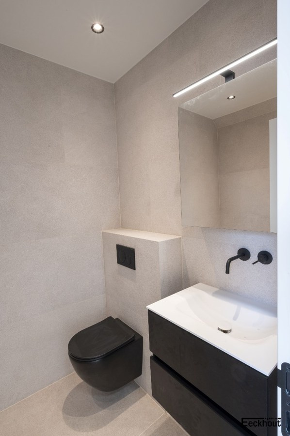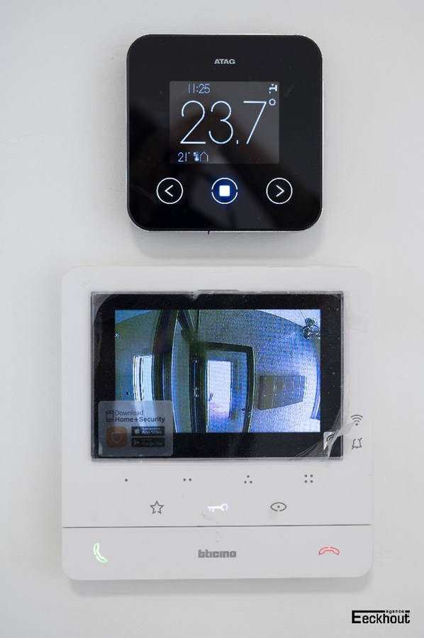 Het appartement werd met moderne luxe-elementen afgewerkt. Denk maar aan een prachtig visgraatparket, gerectificeerde tegels (1m20 x 1m20), een gepantserde veiligheidsdeur, privatieve verwarming (hoogrendementsketels op aardgas met gsm-module op afstand), kleurvideofonie met gsm-module op afstand, design sanitair, inloopdouches op tegelvloer (geen douchebak),