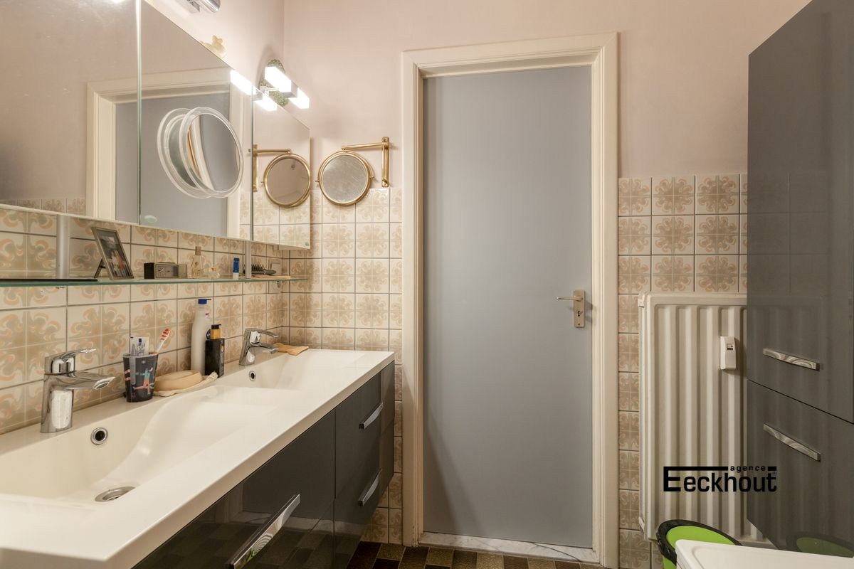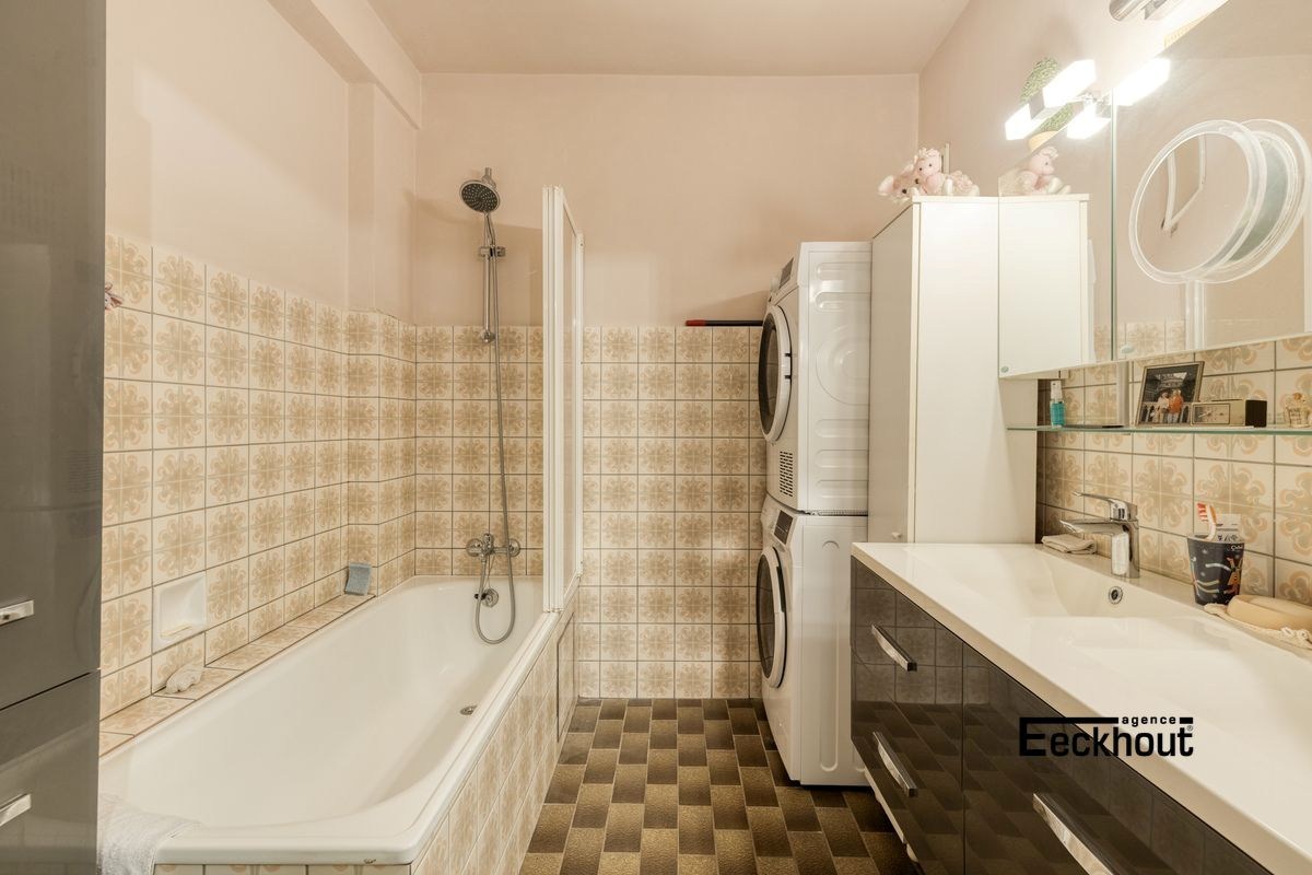 inkomhal met ruime berging, afzonderlijk toilet en vestiaire, woonkamer, aparte keuken met terrasje, badkamer met ligbad en dubbele lavabo en ruimte voor wasmachine en droogkast, en 2 volwaardige slaapkamers, waarvan één met toegang tot terras. Verwarming is gemeenschappelijk.