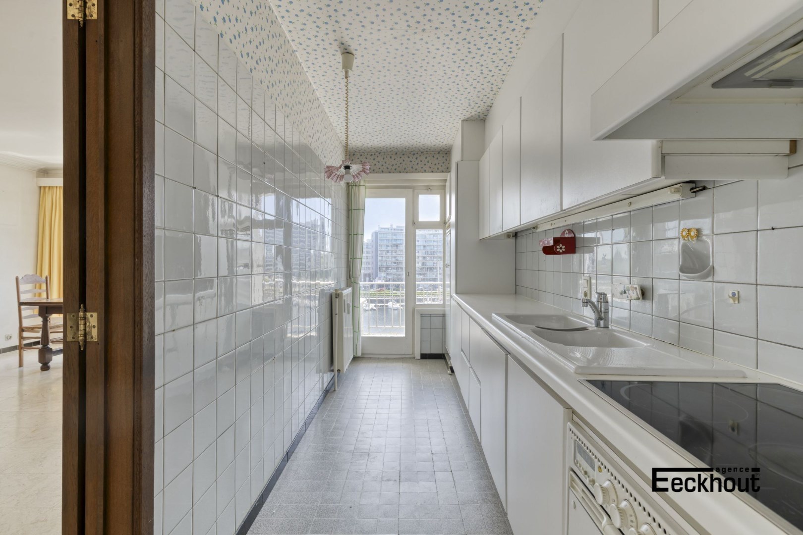 Dit ruim en lichtrijk appartement in het centrum biedt de ideale uitvalsbasis om te worden ondergedompeld in het stadsleven. Het appartement, vol potentieel mits enkele renovatiewerken,, bestaat uit een ruime centrale inkomhal met inbouwvestiaire, een leefruimte met weids zicht over de jachthaven en de iconische Mercator, een keuken met terras, 1 slaapkamer momenteel ingericht als dressing, 2 slaapkamers achteraan waarvan 1 met terras en 1 met lavabomeubel, badkamer voorzien van een lavabomeubel, ligbad, toilet en bidet en nog een afzonderlijk toilet. Beide terrassen zijn voorzien van een buitenberging. Ook is er een gemeenschappelijke fietsenberging en een private kelderberging aanwezig Het appartement bevindt zich vlakbij het station, winkels, allerhande horeca, park, 'bosje' en strand maar biedt door de hogere verdieping veel rust en privacy. Kortom alles wat nodig is voor een comfortabel leven. Het appartement kreeg een EPC-label C waardoor er geen renovatieplicht is. Vraag zeker uw bezoekje aan!