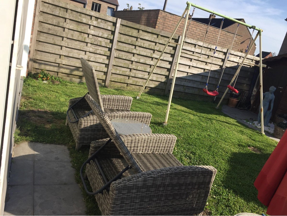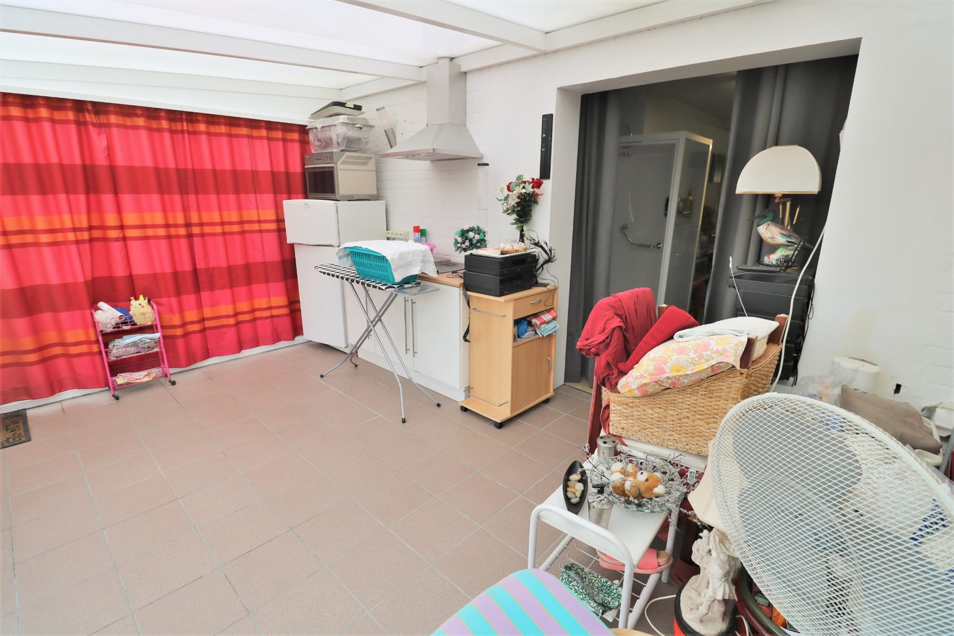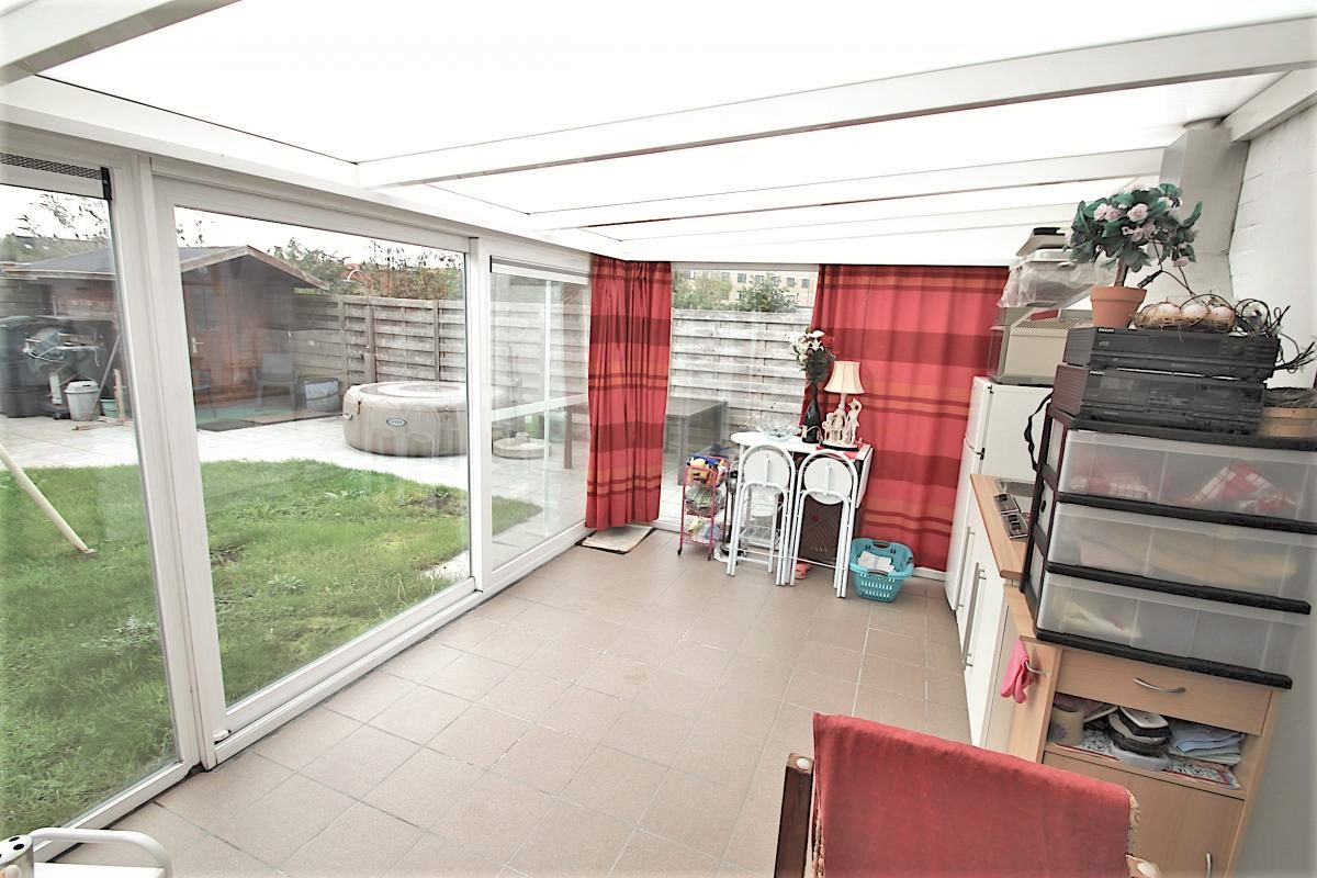 - Gelijkvloers: inkomhal met gastentoilet, grote ruimte (kan ingericht worden als praktijkruimte, welnessruimte, hobbyruimte, ...) met indoor jacuzzi, douchecabine en infraroodsauna, veranda, diepe garage met achterliggende wasruimte en zonnige tuin met bubbelbad en Finse sauna;