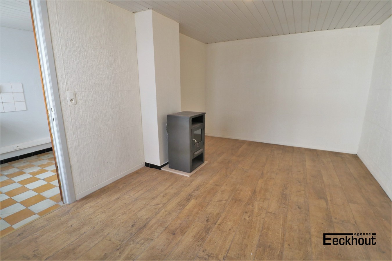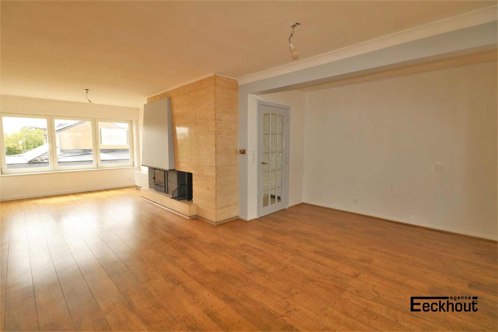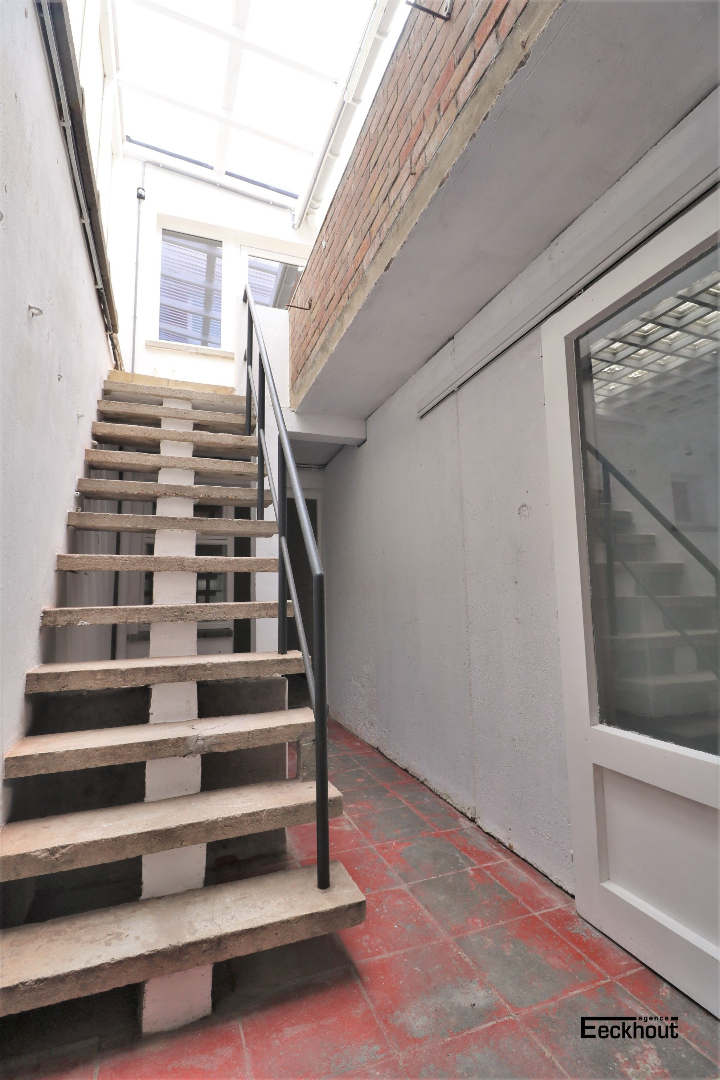 - 1ste verdieping: ruime en lichtrijke leefruimte met inbouwcassette/open haard, gesloten keuken, berging, slaapkamer en terras, deels overdekt;
