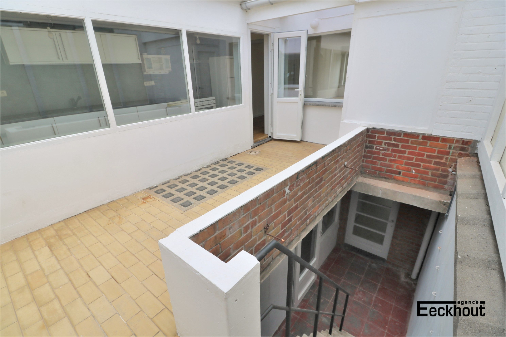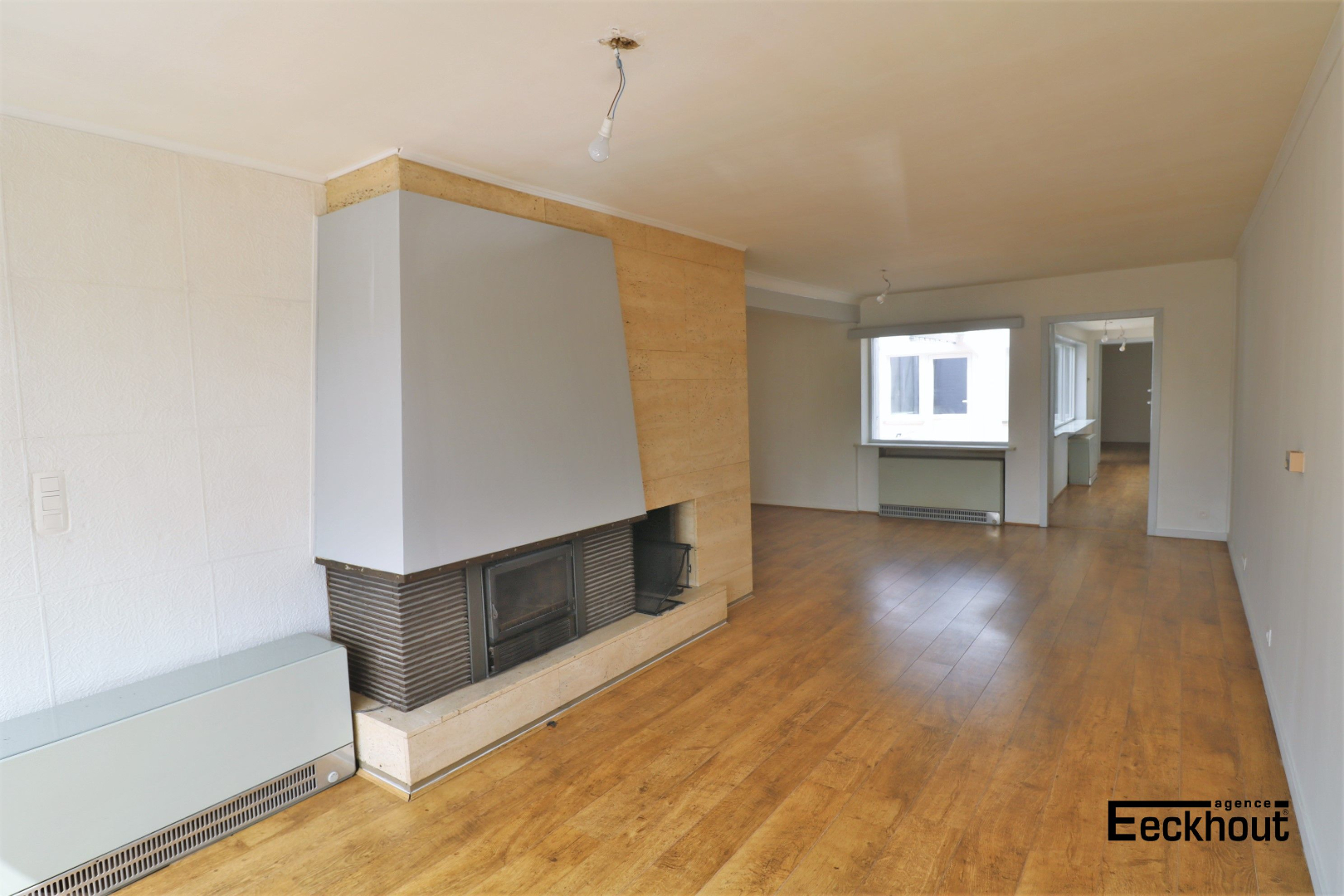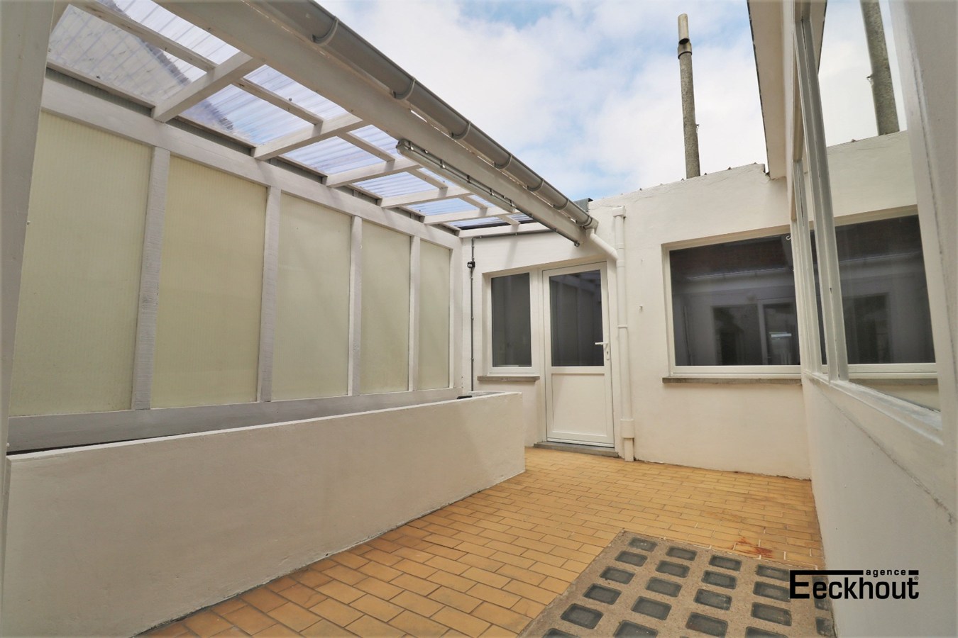 - 1ste verdieping: ruime en lichtrijke leefruimte met inbouwcassette/open haard, gesloten keuken, berging, slaapkamer en terras, deels overdekt;