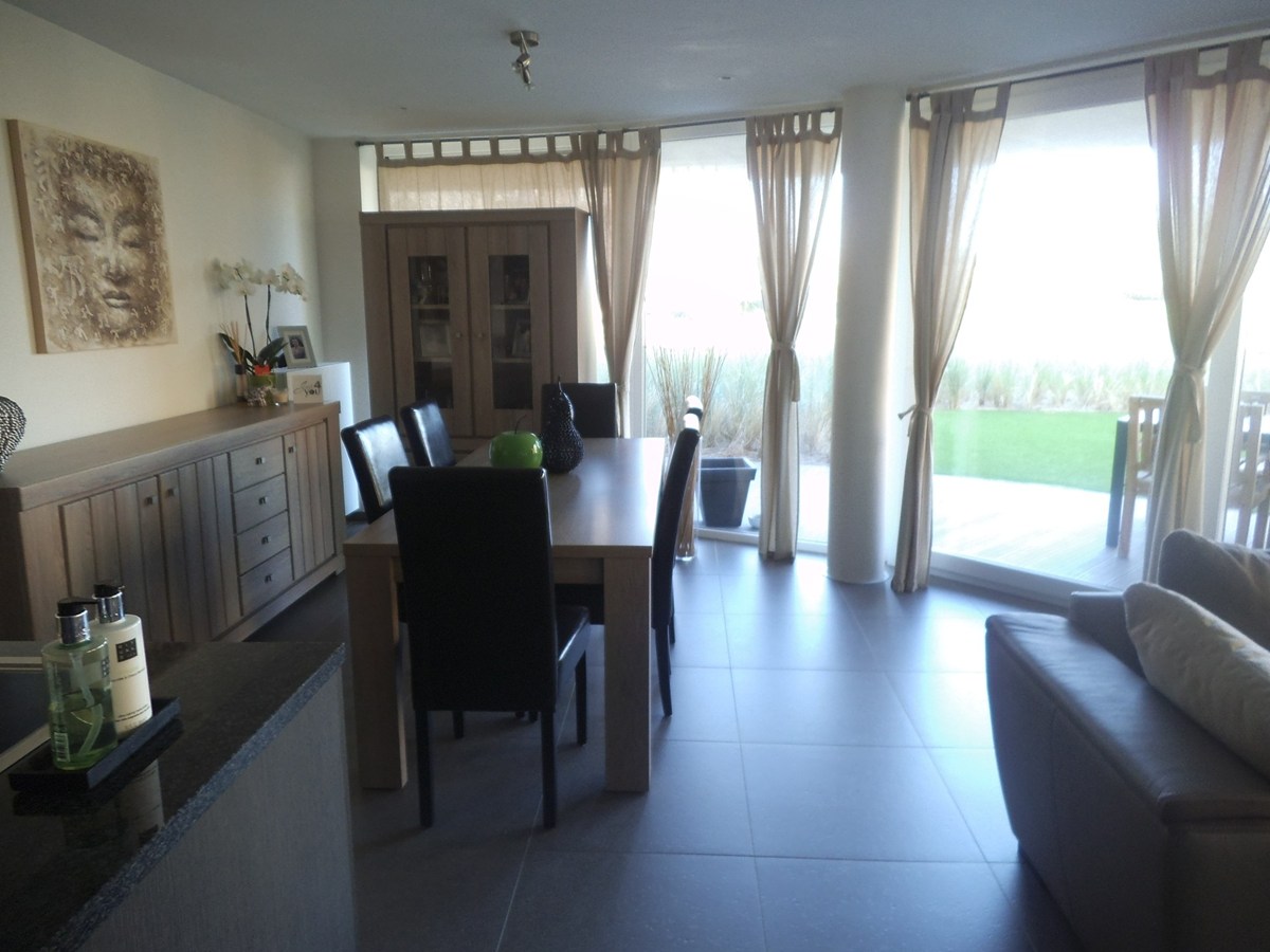 Klassevol appartement in de recente residentie 'Odyssea III' te Bredene ! Op een rustige ligging nabij het strand, zee en duinen. Bestaande uit een lichtrijke woonkamer met open keuken, uitgerust met alle comfort, inkomhal, badkamer met dubbele wastafel en ligbad, apart toilet, 2 slaapkamers, berging en ruime tuin en terras ! Dit mooie appartement is afgewerkt met volwaardige en kwalitatieve materialen ! De groene omgeving rondom de residentie zorgt voor een aangename & rustige leefomgeving.