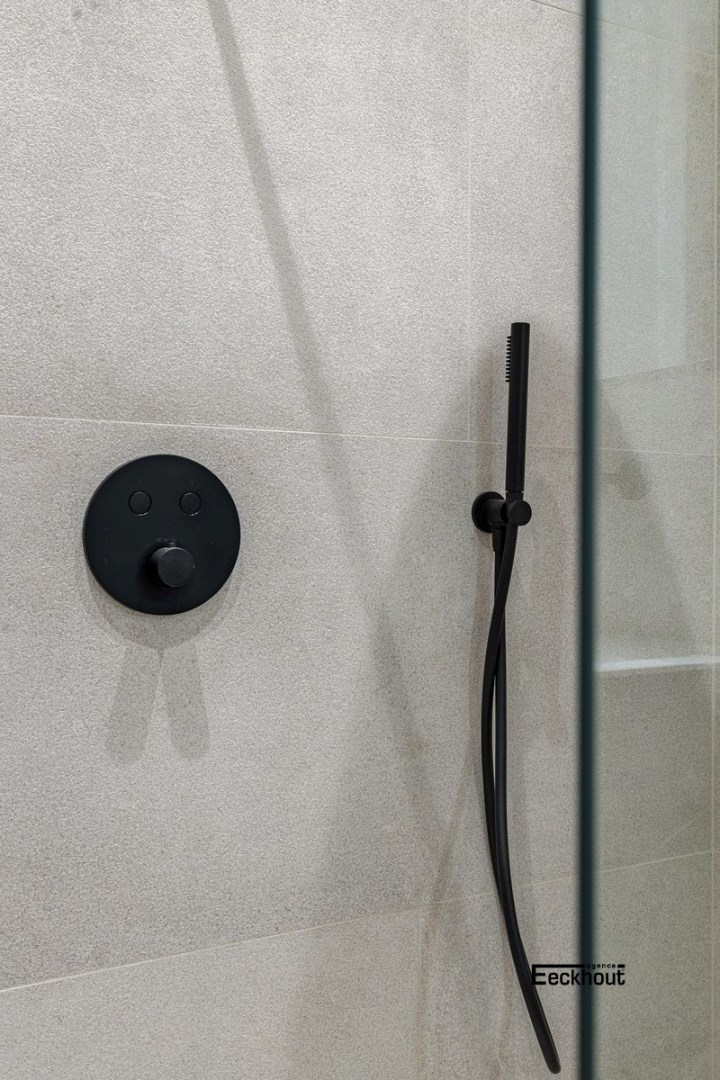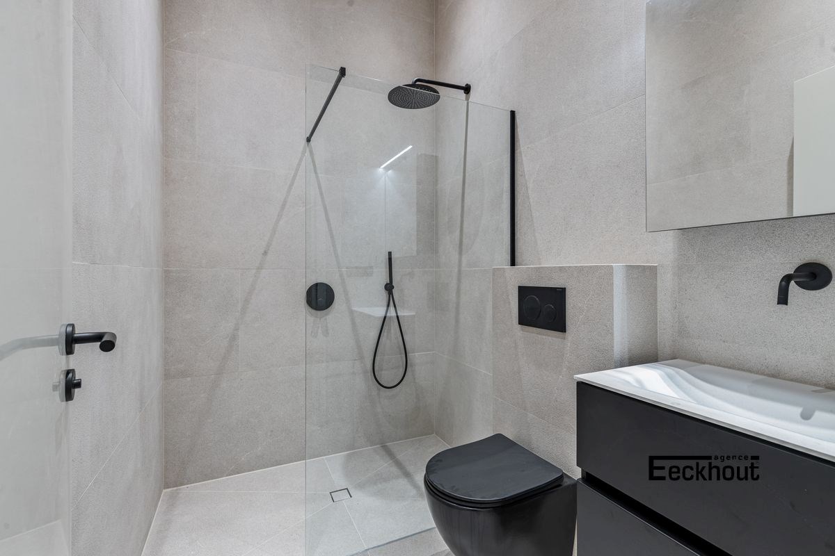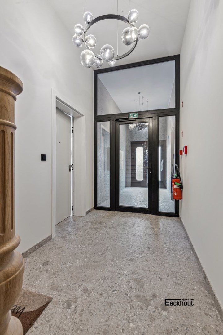 Het appartement werd met moderne luxe-elementen afgewerkt. Denk maar aan een prachtig visgraatparket, gerectificeerde tegels (1m20 x 1m20), een gepantserde veiligheidsdeur, privatieve verwarming (hoogrendementsketels op aardgas met gsm-module op afstand), kleurvideofonie met gsm-module op afstand, design sanitair, inloopdouches op tegelvloer (geen douchebak),
