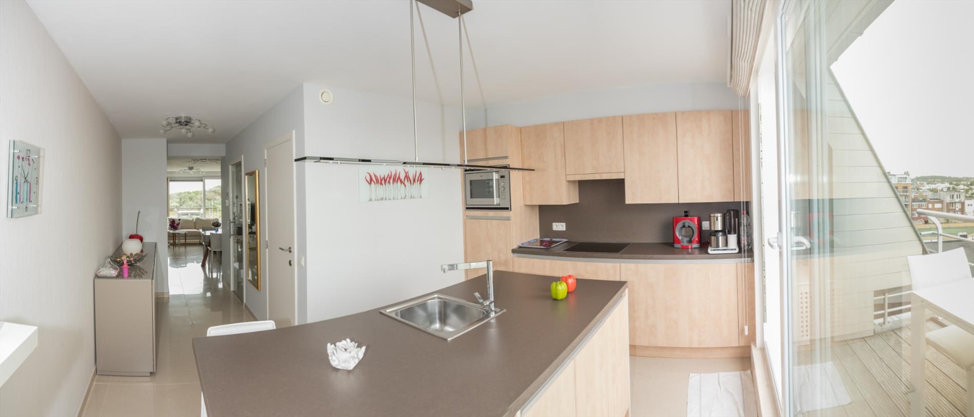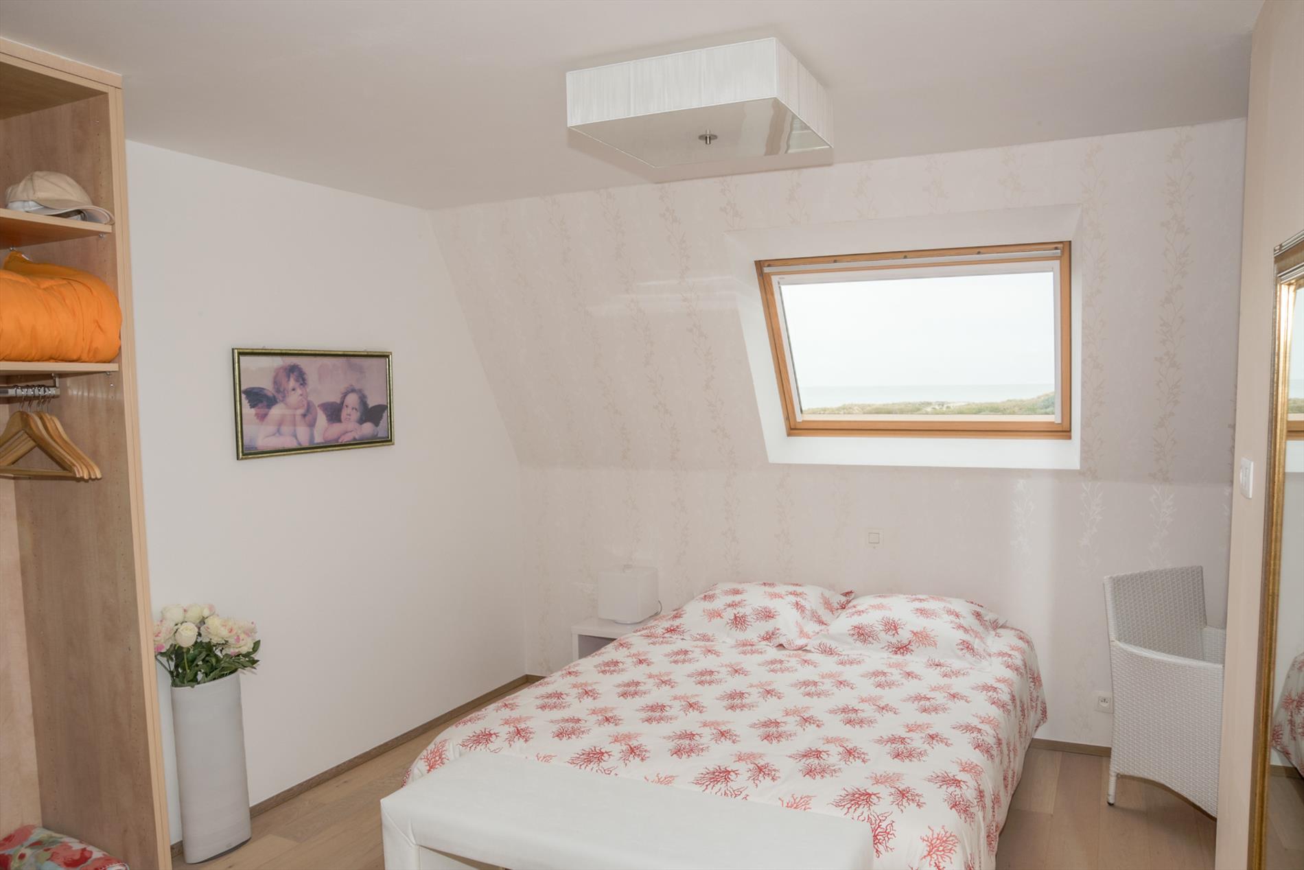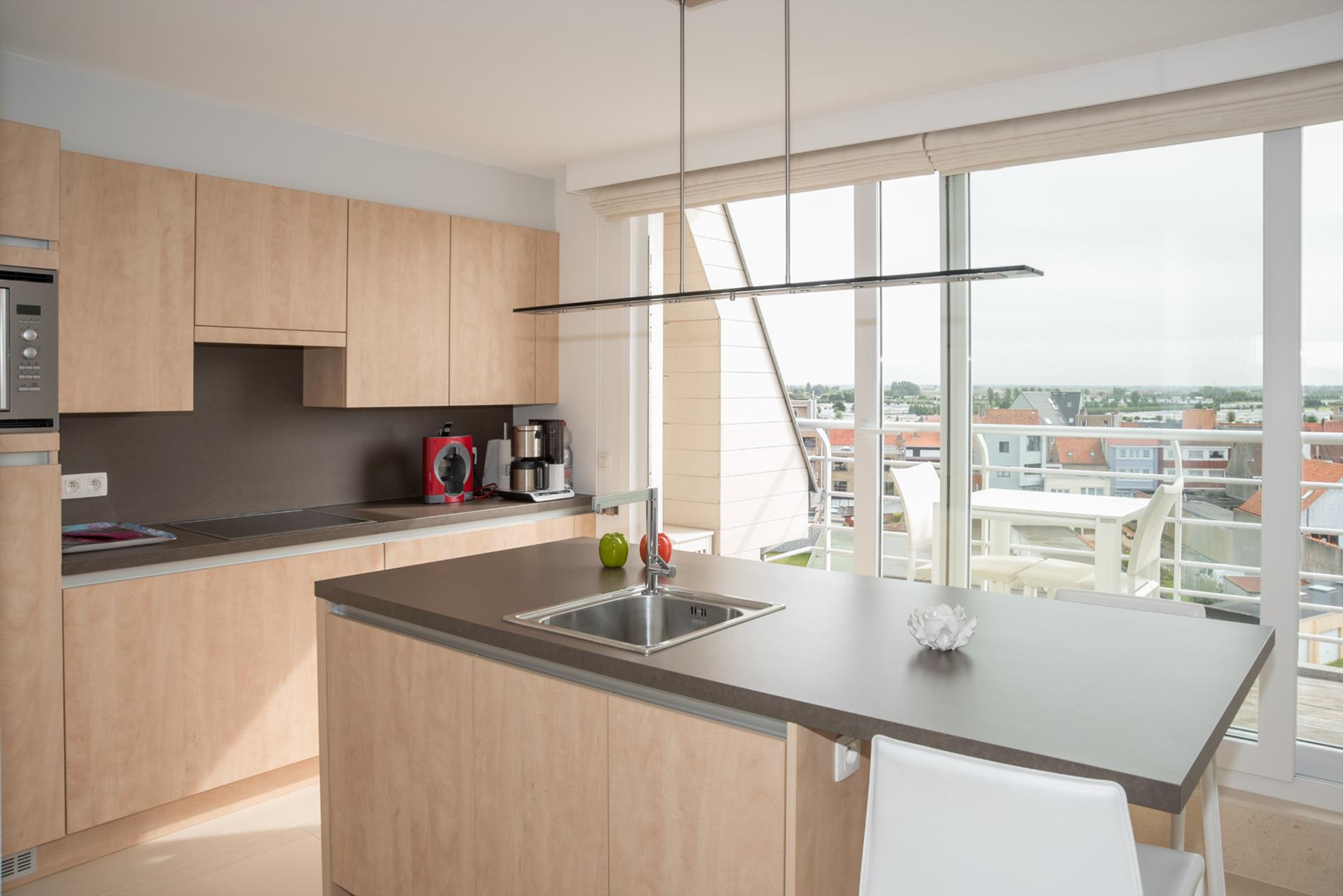Ruim (126 m²) duplex appartement met prachtig open zicht op de duinen (en zee) in de residentie "Lautrec II" gelegen in het centrum van Bredene-Duinen. Het appartement bevindt zich op de vijfde verdieping en is ingedeeld als volgt: inkomhal, apart toilet, woonkamer met aansluitend groot terras met fantastisch zee-en duinenzicht, volledig geïnstalleerde keuken met aansluitend terras, berging. Op de bovenverdieping waren er oorspronkelijk 3 slaapkamers die omgevormd werden tot 2 zeer ruime slaapkamers, douchekamer met lavabo en badkamer met dubbele lavabo, toilet, bidet en ligbad alsook 2 bergingen. Het appartement is voorzien van op afstand regelbare thermostaat alsook veluxen met elektrische rolluiken op de bovenverdieping.Mogelijkheid tot aankoop van een garagebox. Goed gelegen op amper 100m van het strand, vlakbij alle winkels en dichtbij het openbaar vervoer!