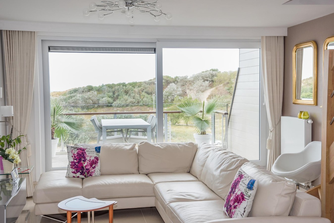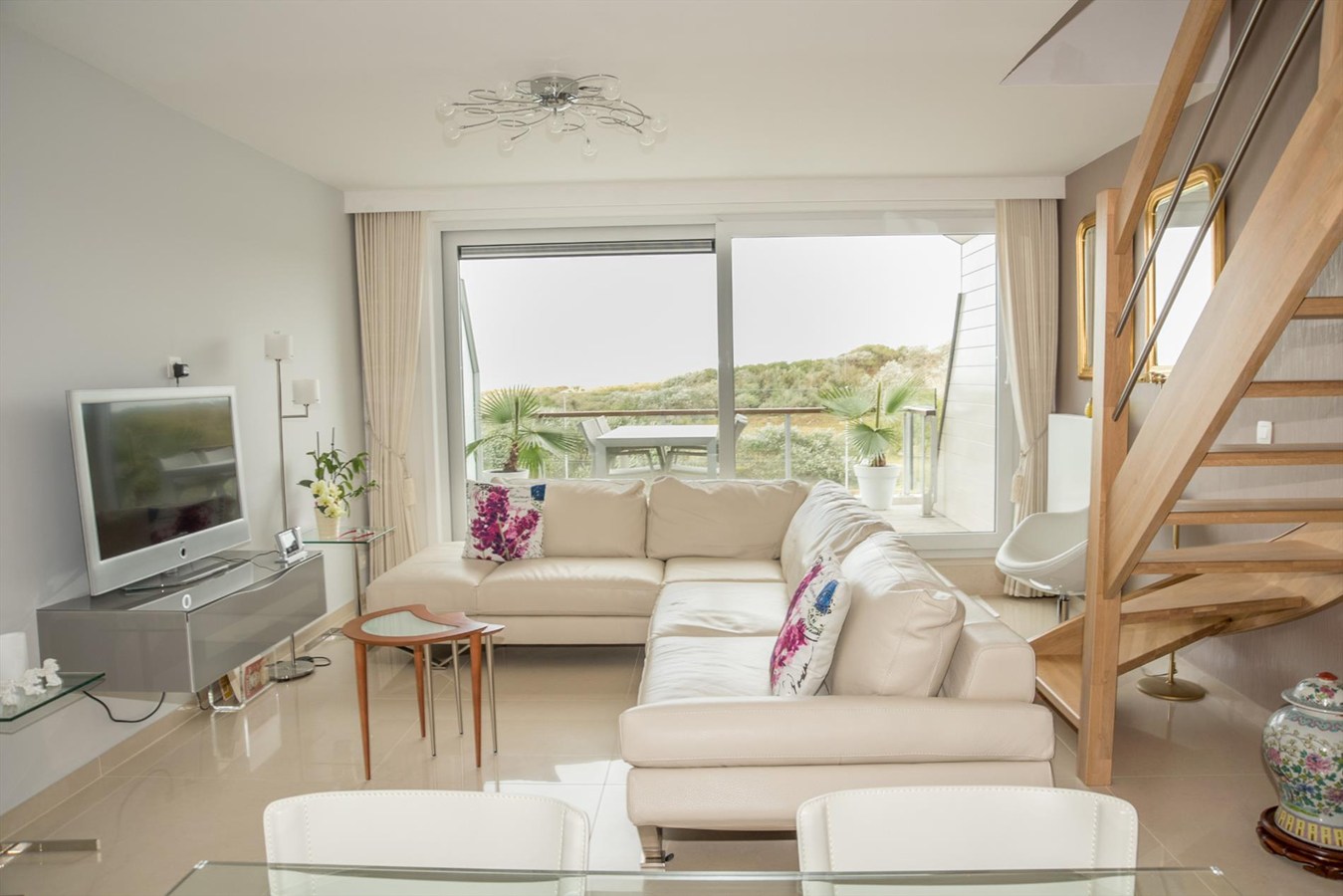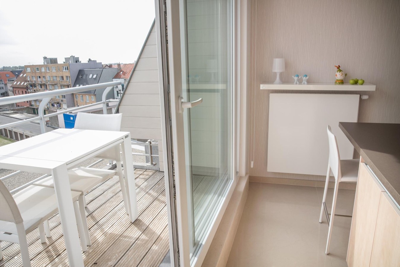 Ruim (126 m²) duplex appartement met prachtig open zicht op de duinen (en zee) in de residentie "Lautrec II" gelegen in het centrum van Bredene-Duinen. Het appartement bevindt zich op de vijfde verdieping en is ingedeeld als volgt: inkomhal, apart toilet, woonkamer met aansluitend groot terras met fantastisch zee-en duinenzicht, volledig geïnstalleerde keuken met aansluitend terras, berging. Op de bovenverdieping waren er oorspronkelijk 3 slaapkamers die omgevormd werden tot 2 zeer ruime slaapkamers, douchekamer met lavabo en badkamer met dubbele lavabo, toilet, bidet en ligbad alsook 2 bergingen. Het appartement is voorzien van op afstand regelbare thermostaat alsook veluxen met elektrische rolluiken op de bovenverdieping.Mogelijkheid tot aankoop van een garagebox. Goed gelegen op amper 100m van het strand, vlakbij alle winkels en dichtbij het openbaar vervoer!