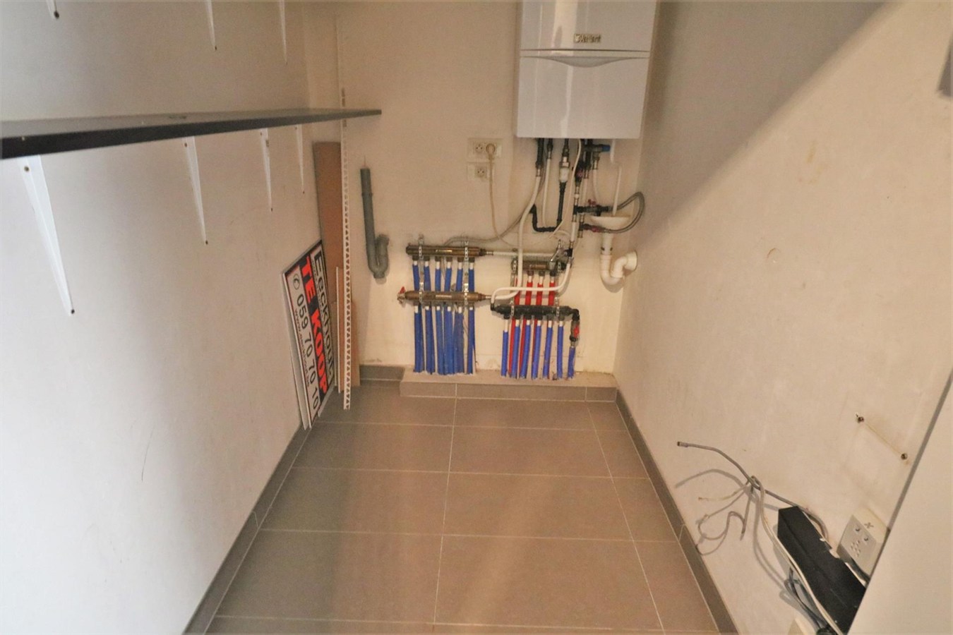-1ste verdieping : inkomhal, apart toilet, ruime woonkamer met open, volledig geïnstalleerde keuken, aansluitend terras en berging met aansluiting voor wasmachine;
