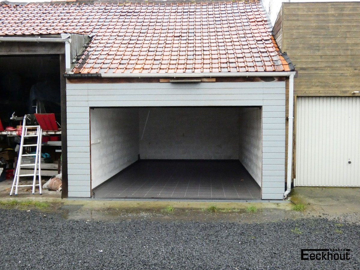 Deze loods is onderverdeeld in 3 afgesloten garageboxen, waarvan de middelste voorzien is van een sectionale poort met afstandsbediening, de linkse en rechtse poorten zijn handmatig te openen. De ruime zolder is toegankelijk via middelste garagebox.