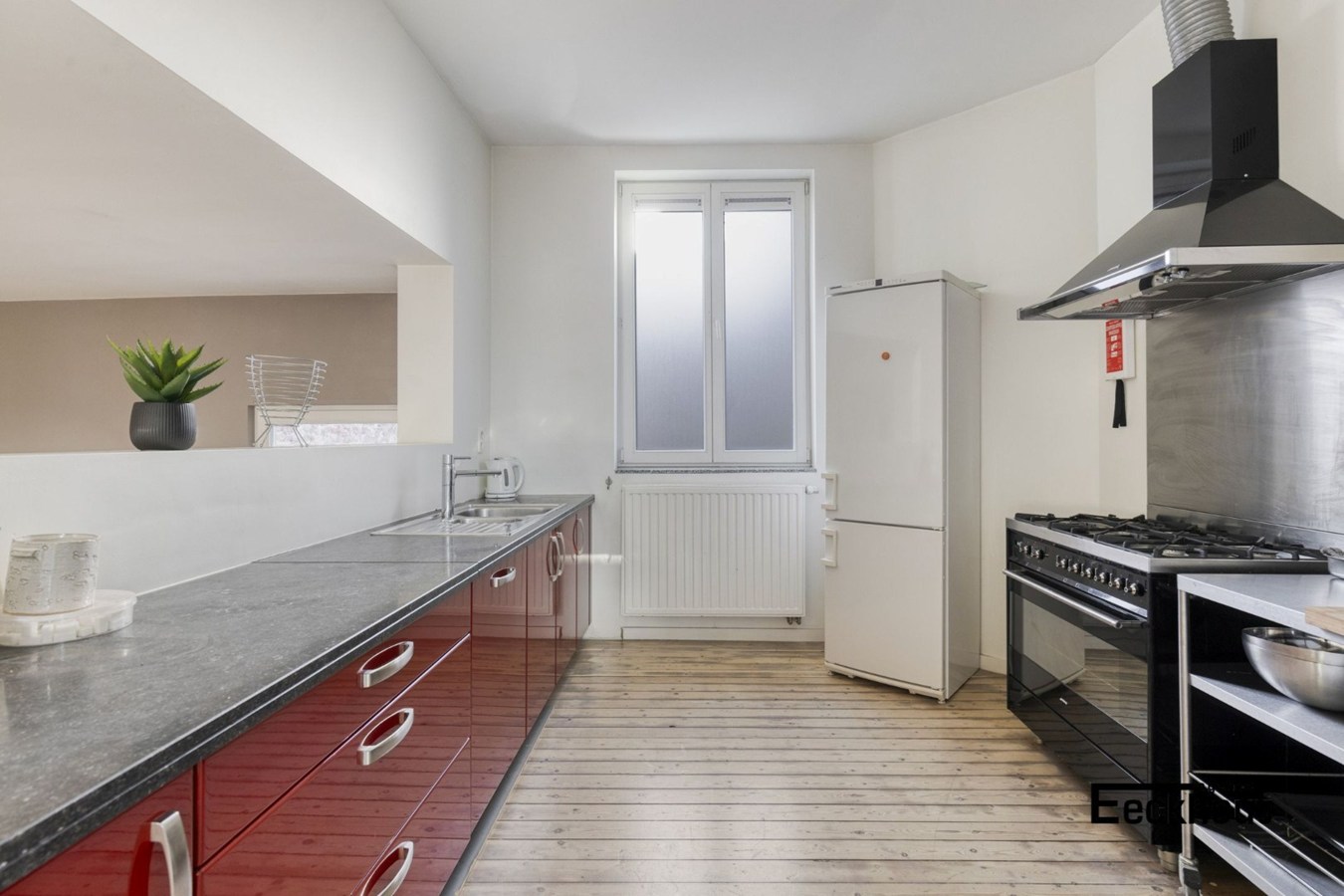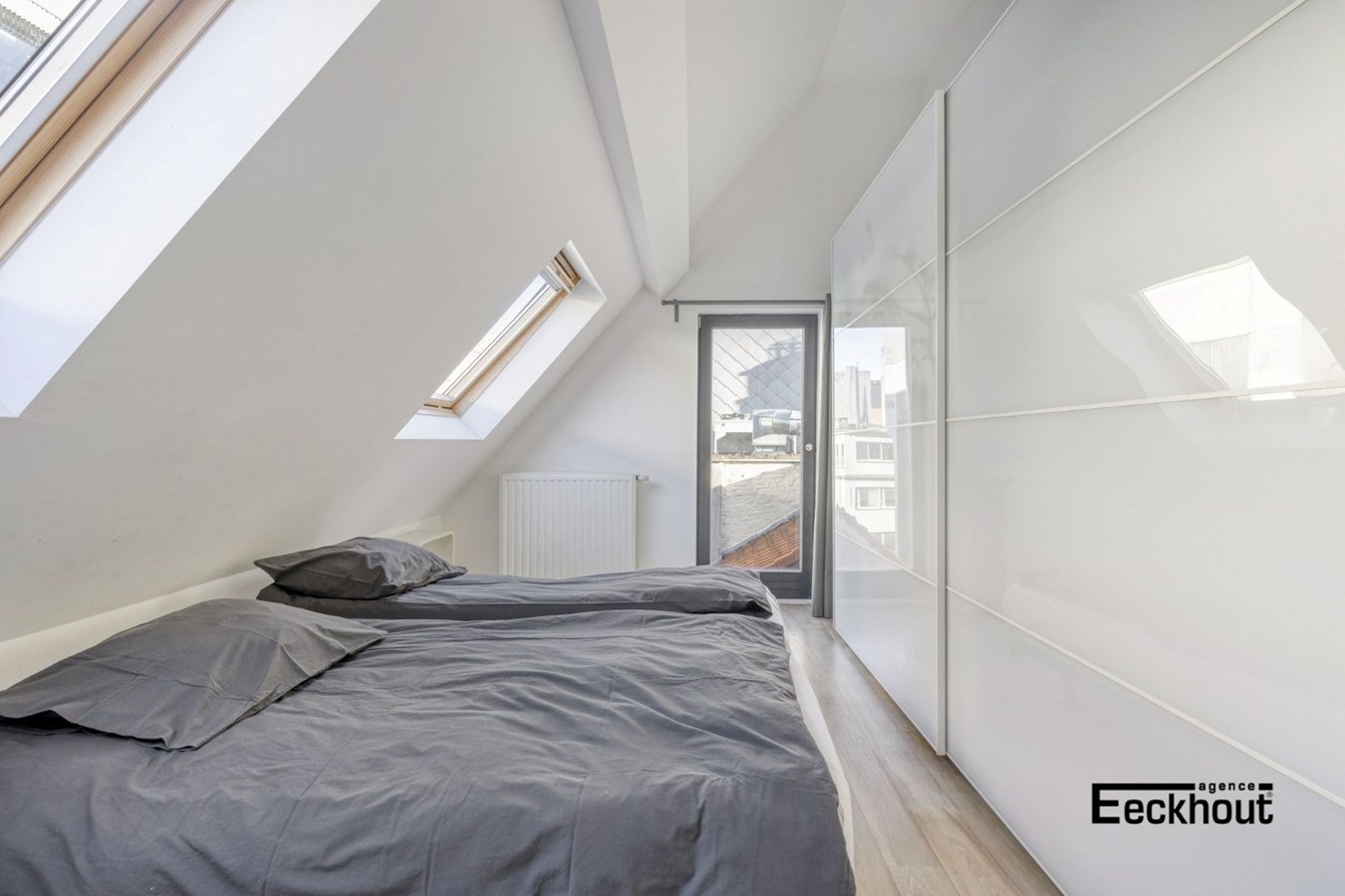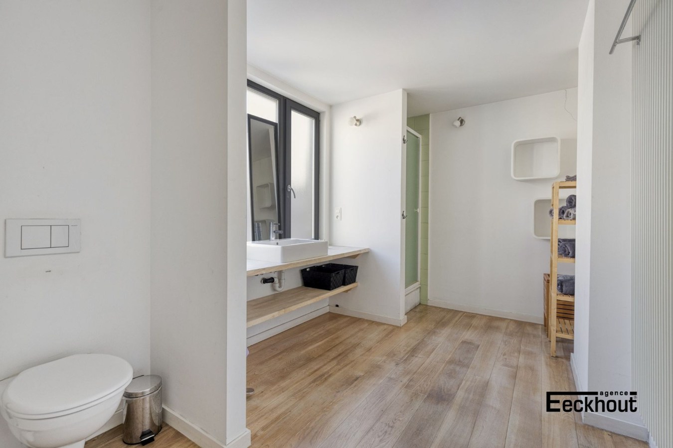 - tweede verdieping: multifunctionele ruimte die momenteel als bureau werd ingericht;