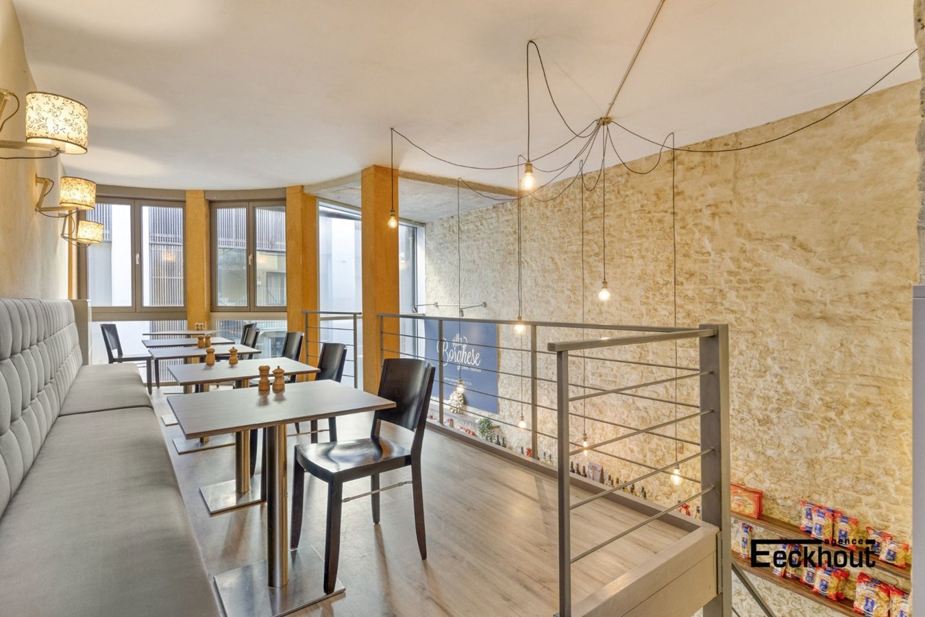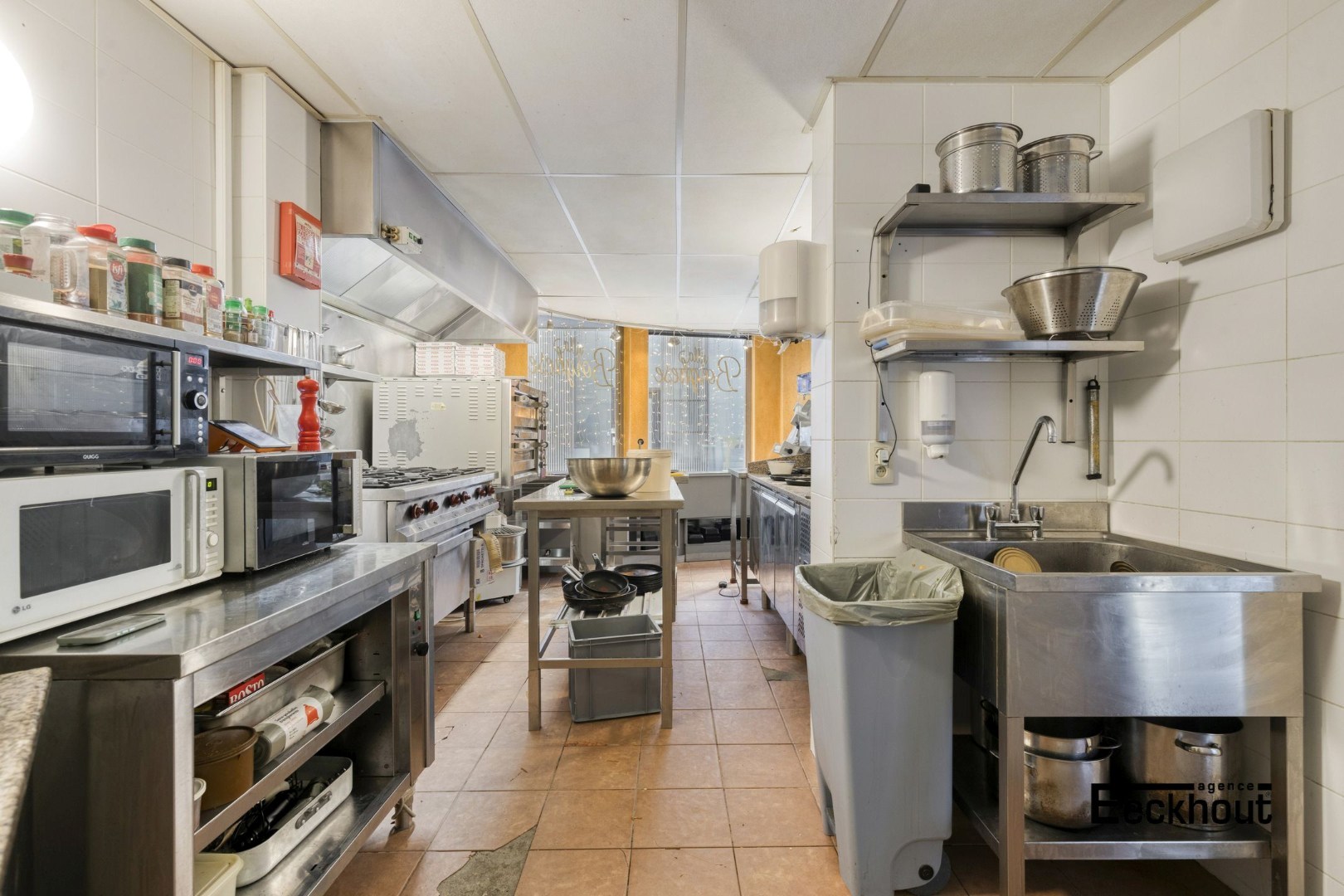 - gelijkvloers: functionele keuken, catering- en kassaruimte, berging;