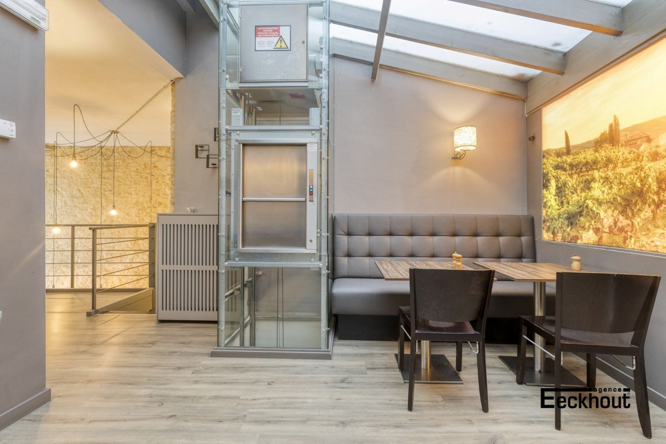 - eerste verdieping: aangename zitruimte (voorzien van serveerlift) met sanitaire voorzieningen;
