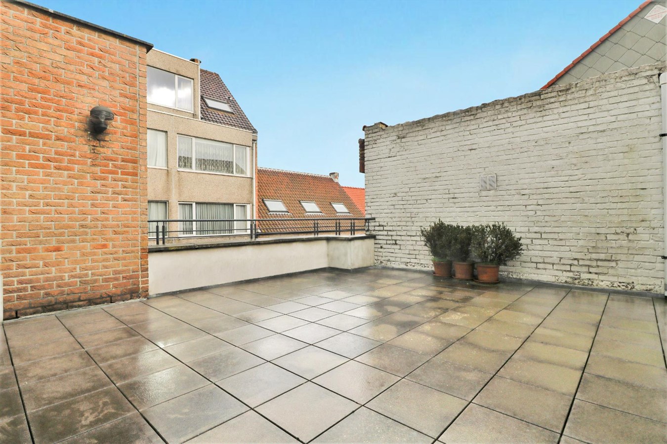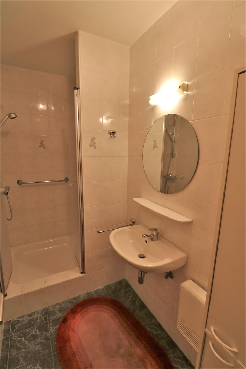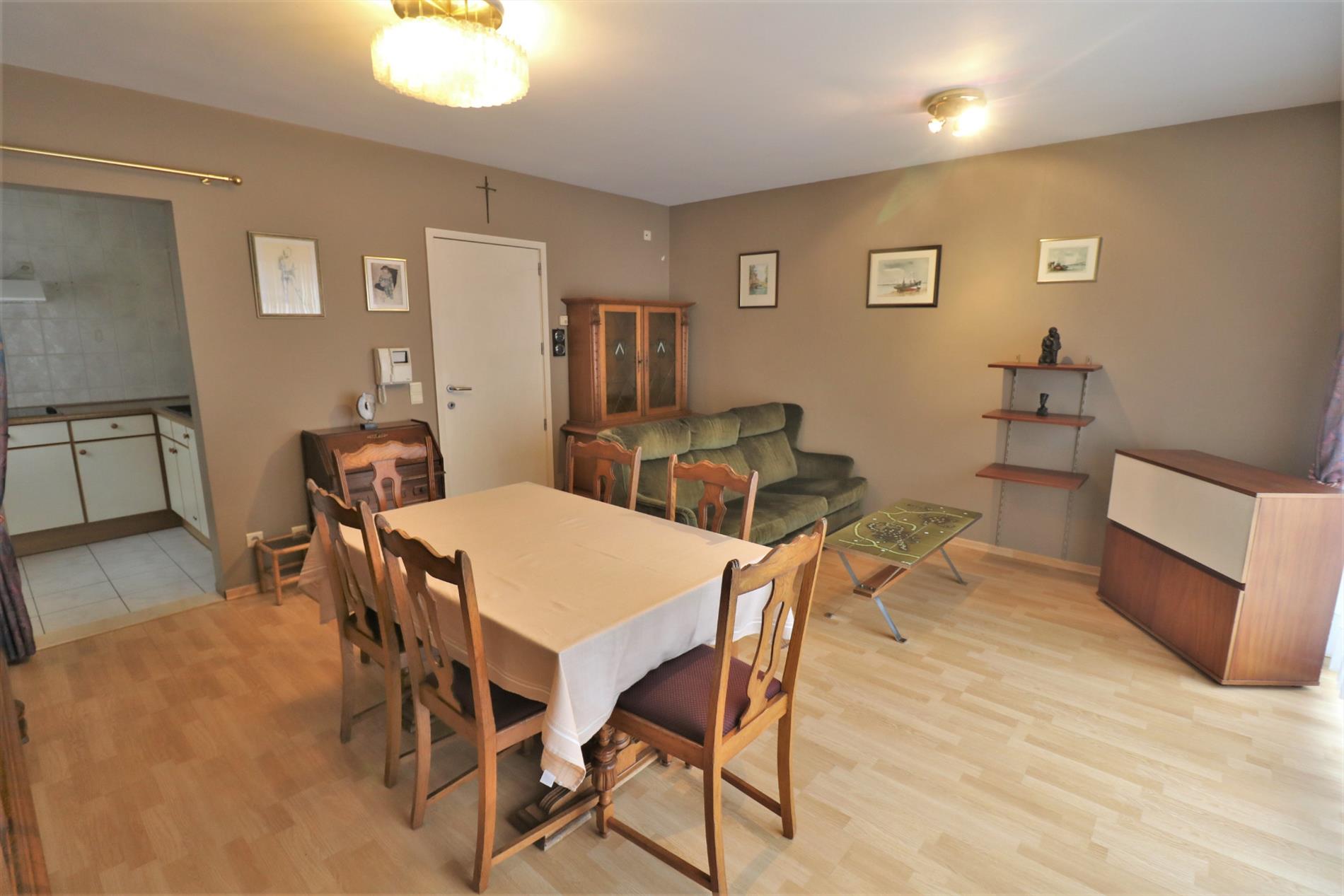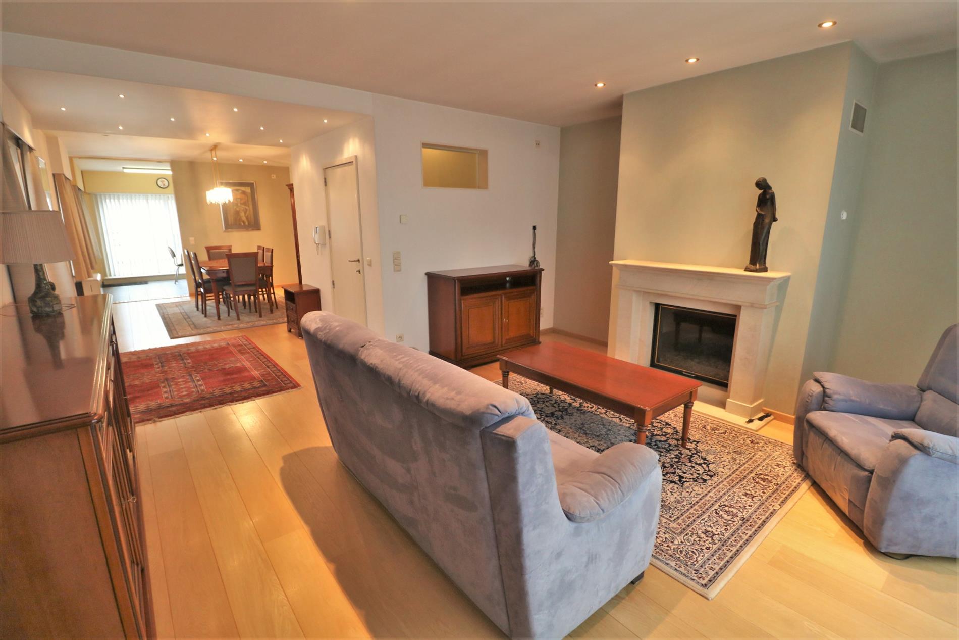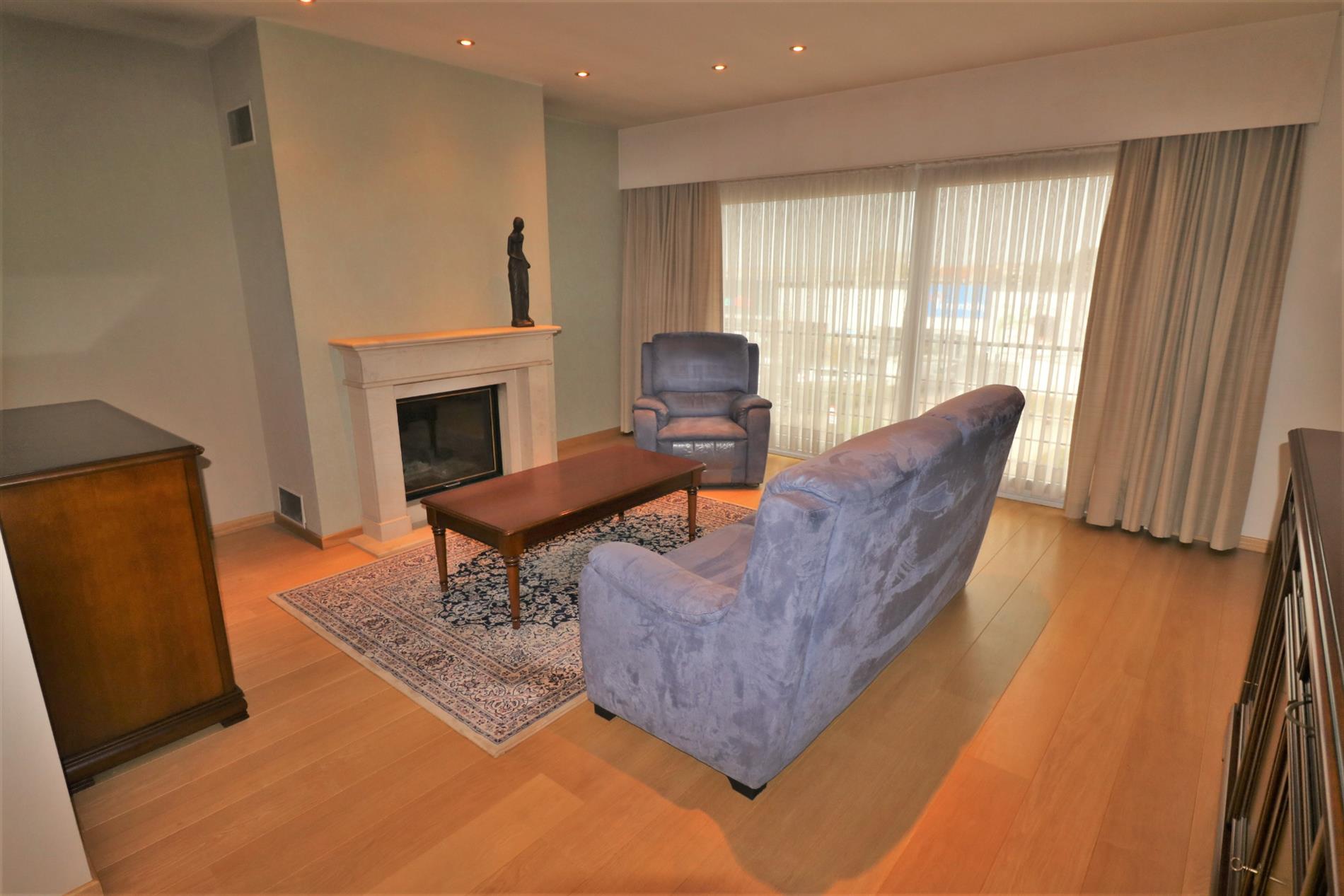 - 1ste verdieping: zonnige leefruimte met aansluitend terrasje en half-open geïnstalleerde keuken, badkamer met ligbad en dubbel lavabomeubel, douchekamer, apart toilet en 3 ruime slaapkamers;