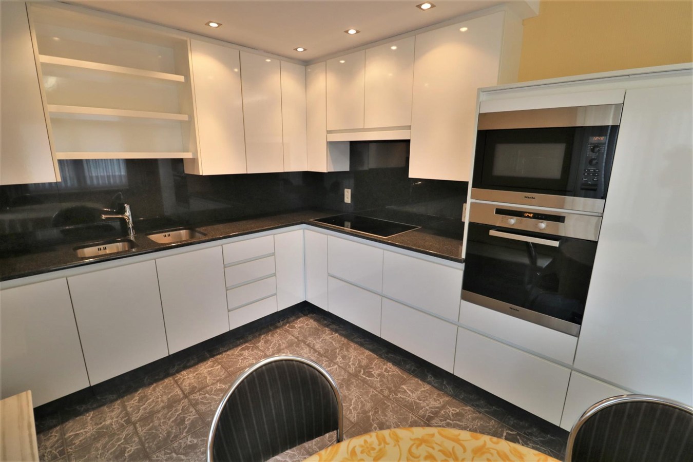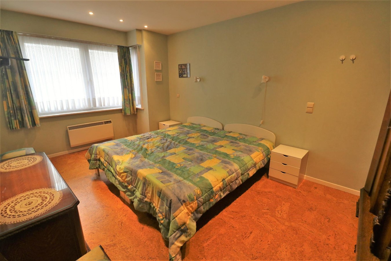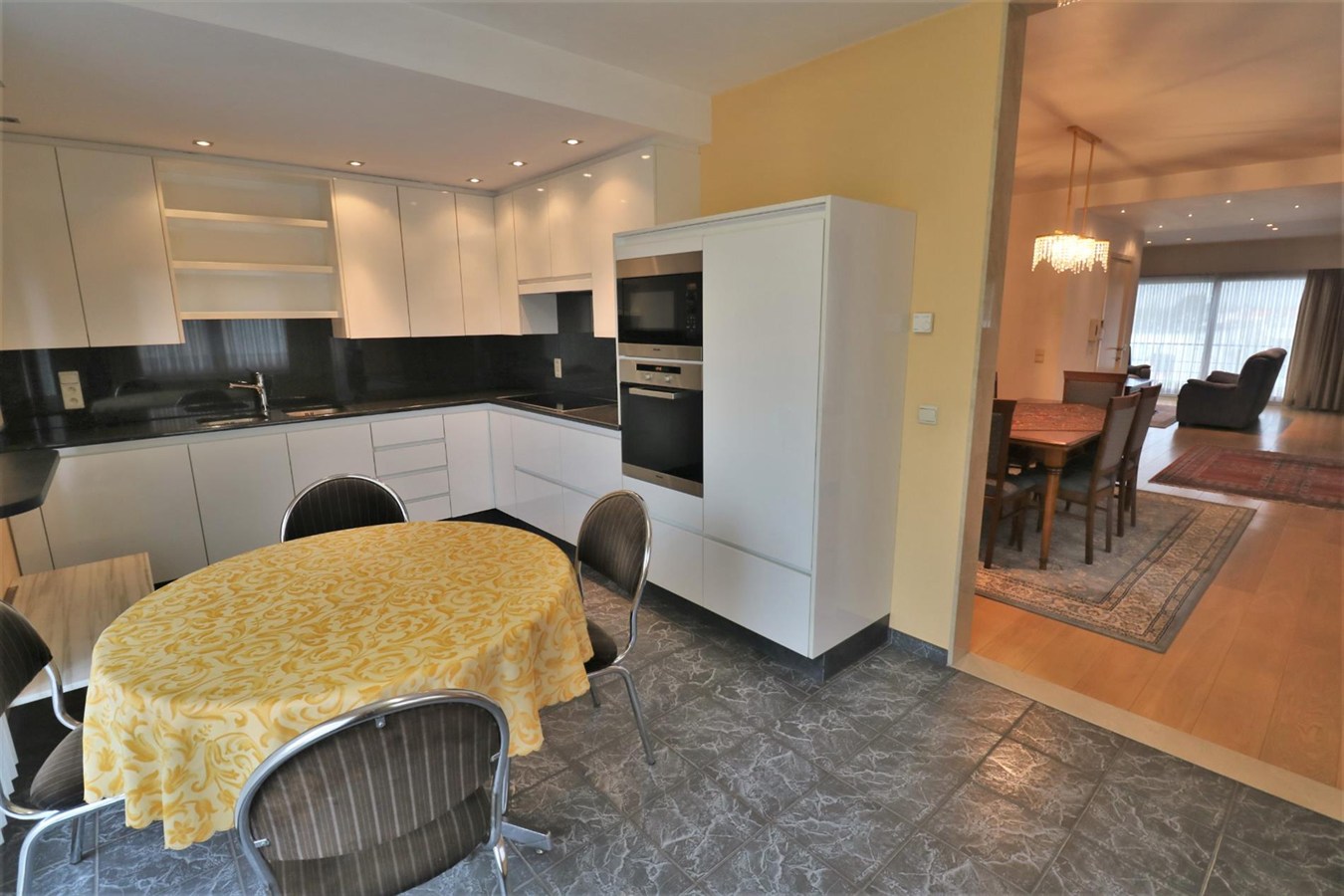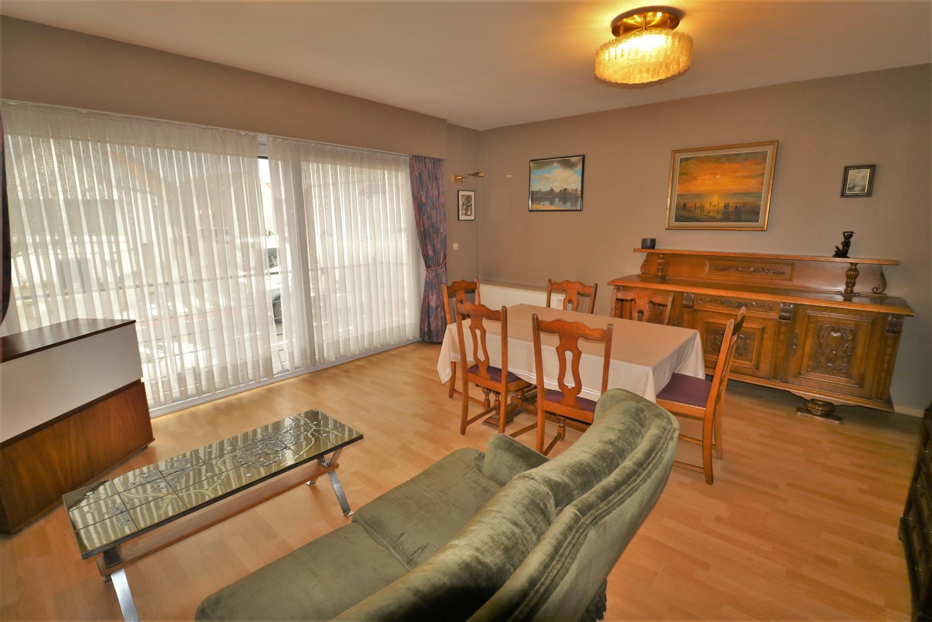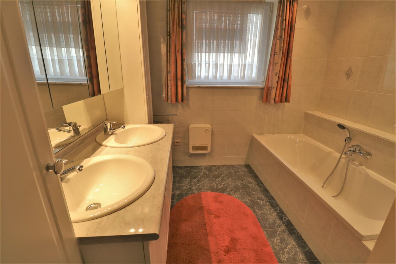 - 1ste verdieping: zonnige leefruimte met aansluitend terrasje en half-open geïnstalleerde keuken, badkamer met ligbad en dubbel lavabomeubel, douchekamer, apart toilet en 3 ruime slaapkamers;