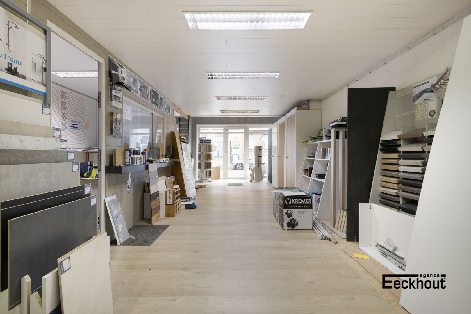 Het pand is ingedeeld als volgt: winkelruimte met toonbank/balie, atelier, mezzanine die eveneens als stockage en archief kan gebruikt worden, grote loods.