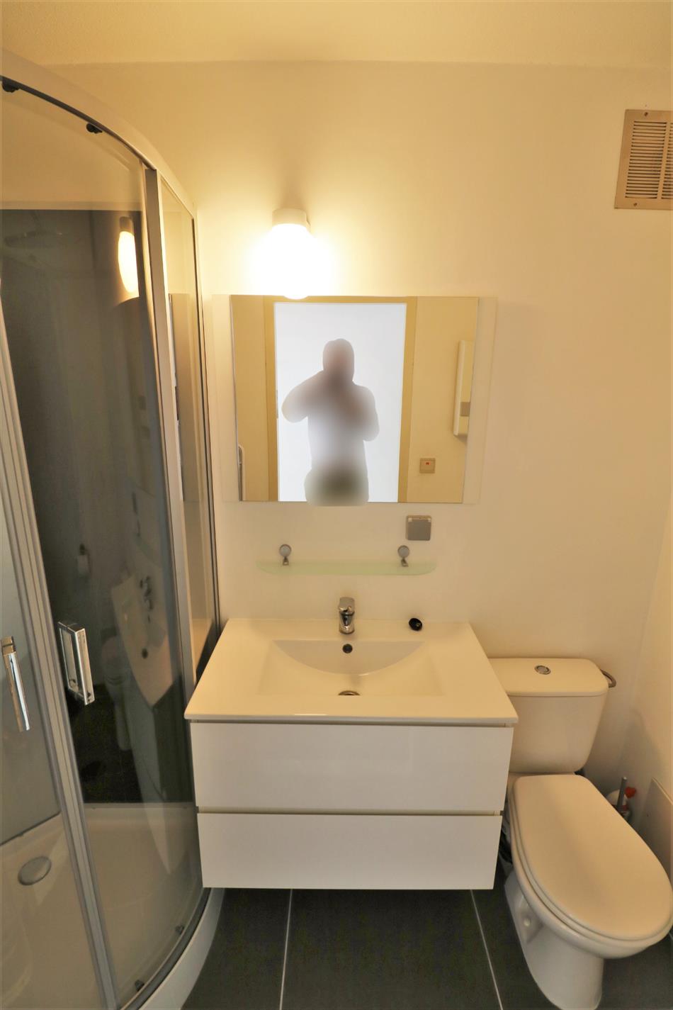 Indeling: Inkomhal, badkamer met massagedouche en toilet, woonkamer/slaapkamer, open ingerichte keuken en terras aan de voorzijde.