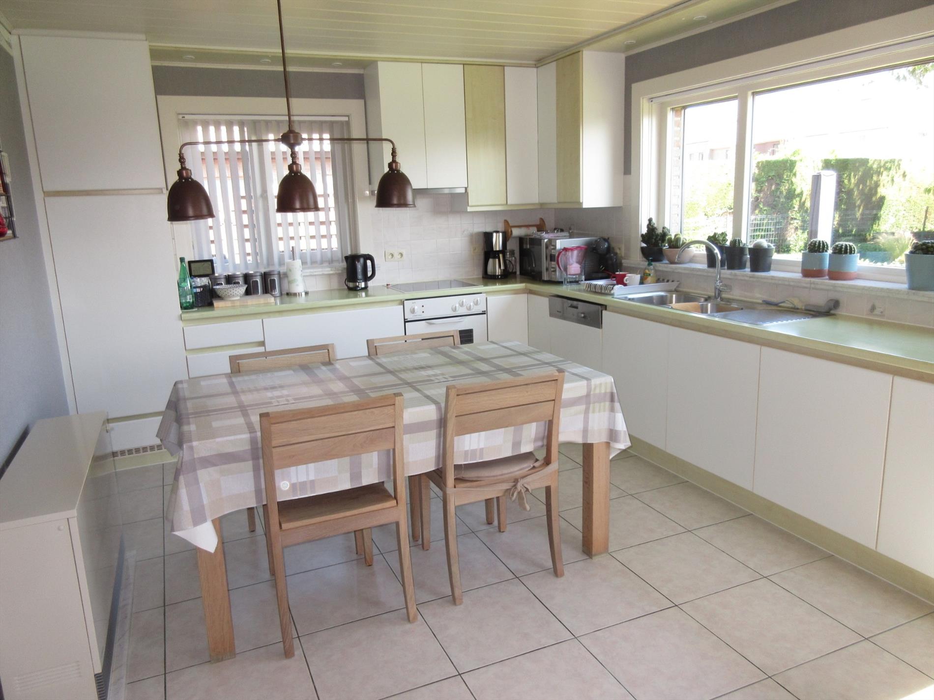 Omschrijving: inkomhal met gastentoilet, lichtrijke living met inbouwcassette (hout), volledig geïnstalleerde & zeer ruime keuken, ruime garage. 1e verdieping: 3 ruime slaapkamers waarvan 2 slaapkamers met ingemaakte kasten, badkamer met ligbad en lavabomeubel. Met fraai aangelegde & zuidgerichte tuin met tuinhuis.