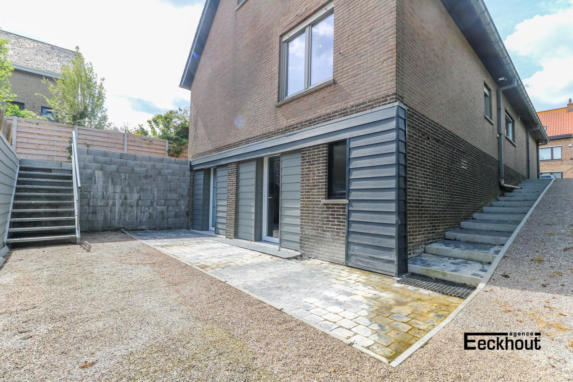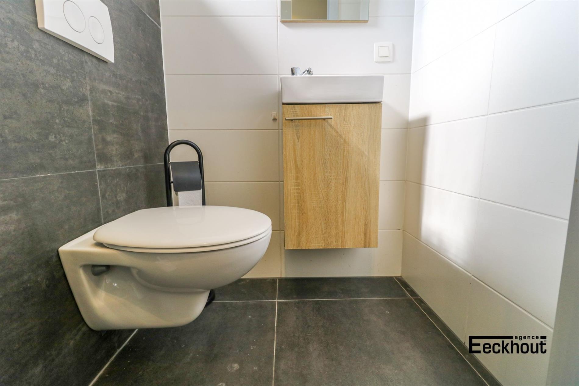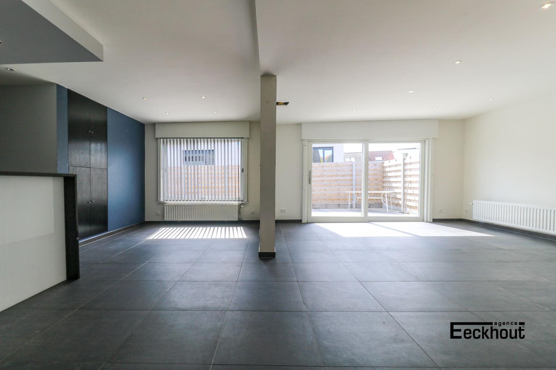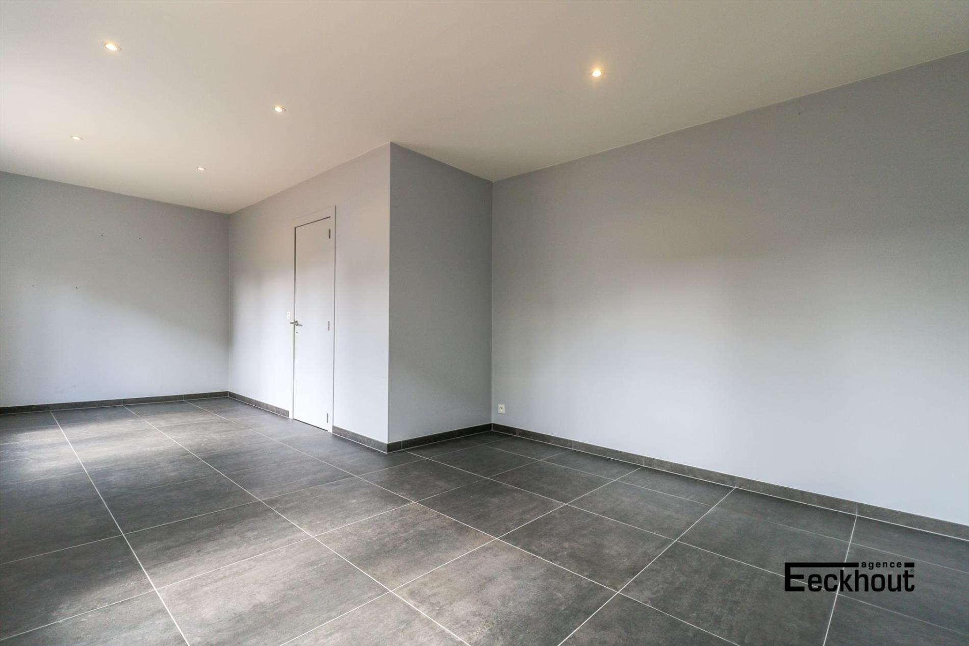 gelijkvloers: inkomhal, gastentoilet, ruime en zonnige woonkamer, open keuken met kookplaat, dampkap, koelkast, diepvries, vaatwas, microgolfoven, traditionele oven en zeer veel opbergruimte, 2 grote slaapkamers en badkamer met inloopdouche;