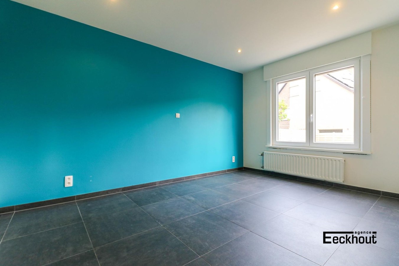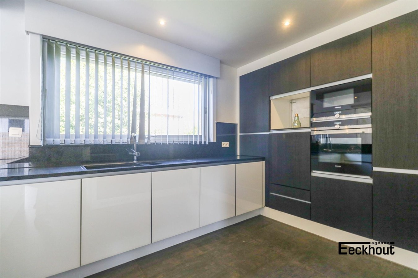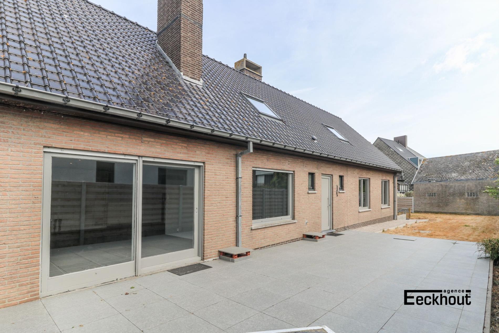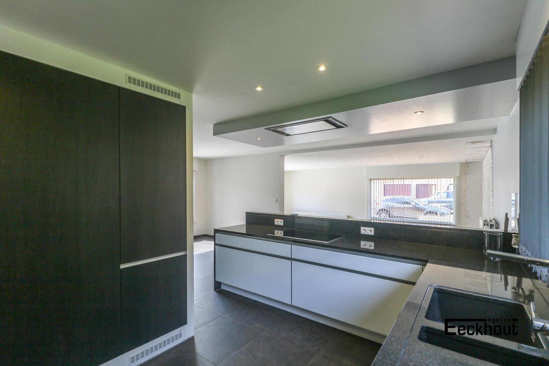 gelijkvloers: inkomhal, gastentoilet, ruime en zonnige woonkamer, open keuken met kookplaat, dampkap, koelkast, diepvries, vaatwas, microgolfoven, traditionele oven en zeer veel opbergruimte, 2 grote slaapkamers en badkamer met inloopdouche;