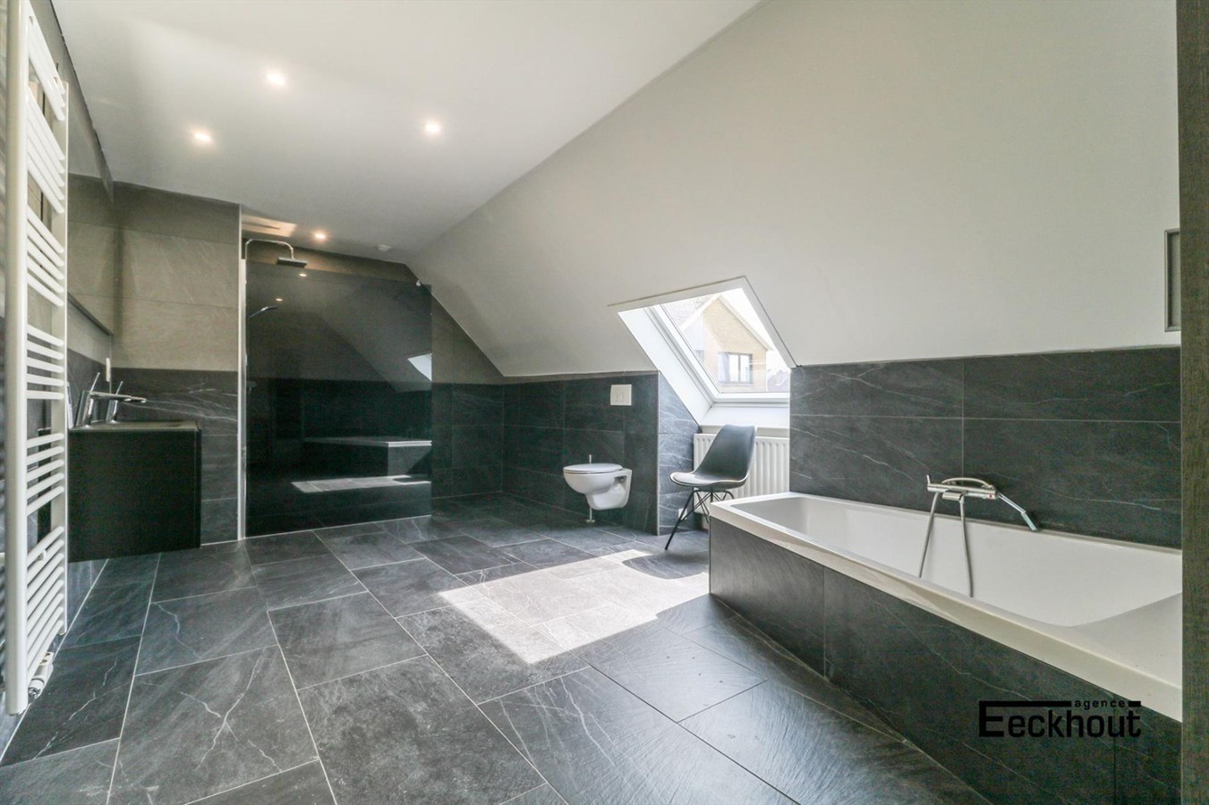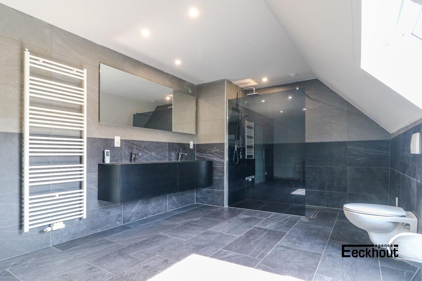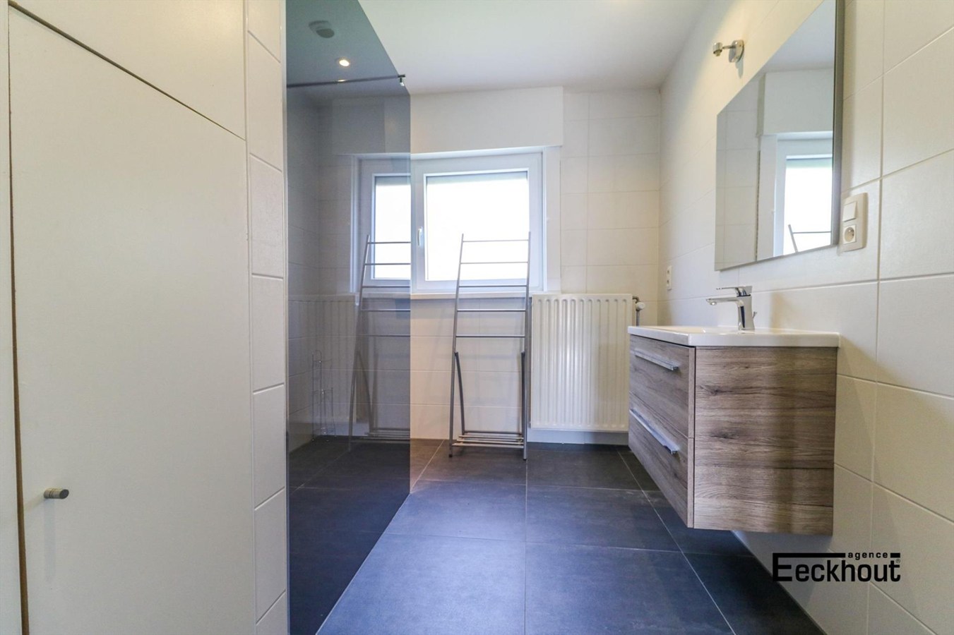 eerste verdieping: nachthal met ingemaakte kasten, 2 grote slaapkamers waarvan één met dressing en badkamer met ligbad, dubbele lavabo, toilet en inloopdouche;