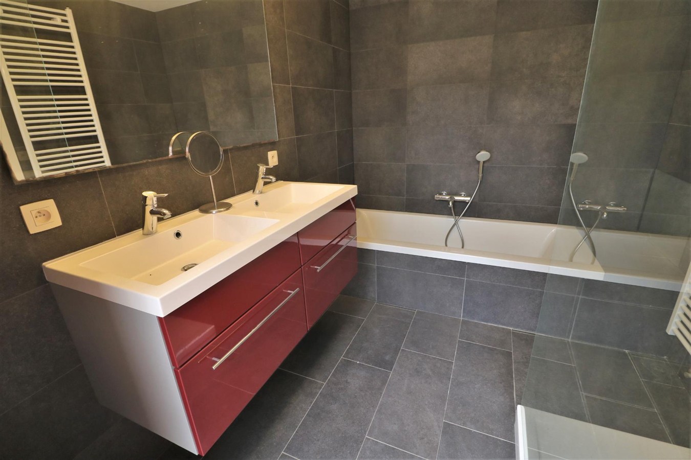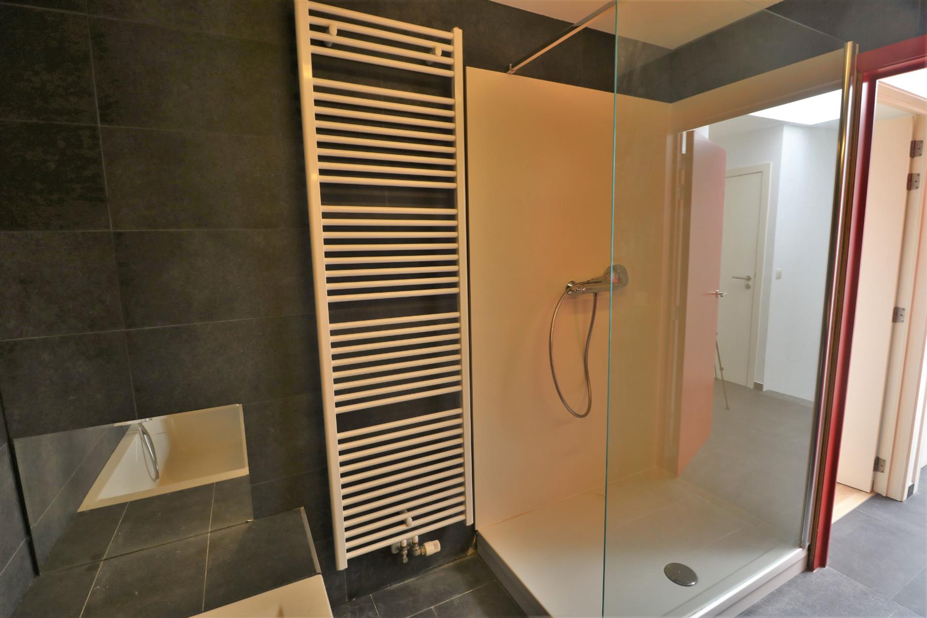 - 2de verdiep: 3 volwaardige slaapkamers, kamer ingericht als dressing (mogelijk om aan te wenden als 4de slaapkamer), 3e toilet en vernieuwde badkamer met ligbad, inloopdouche en dubbel lavabomeubel.
