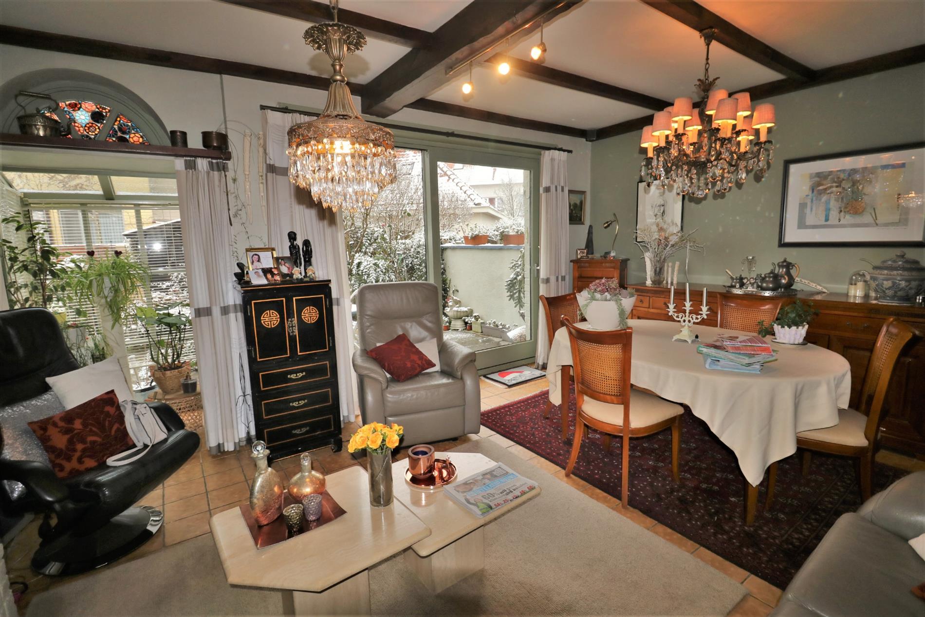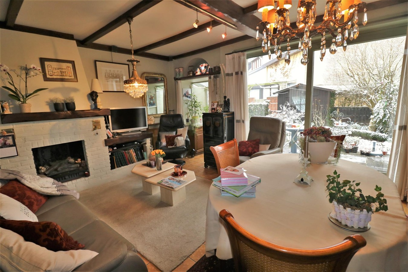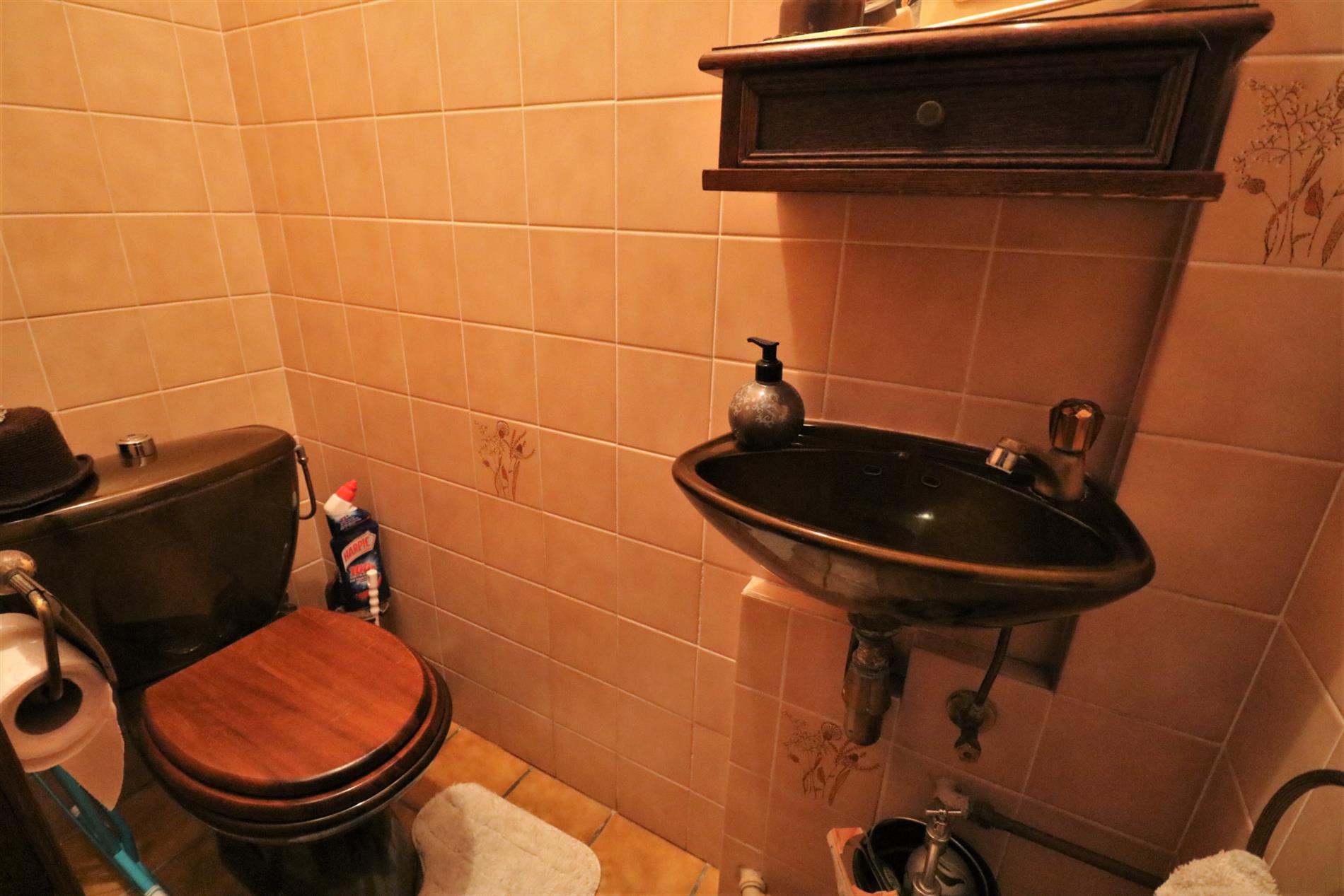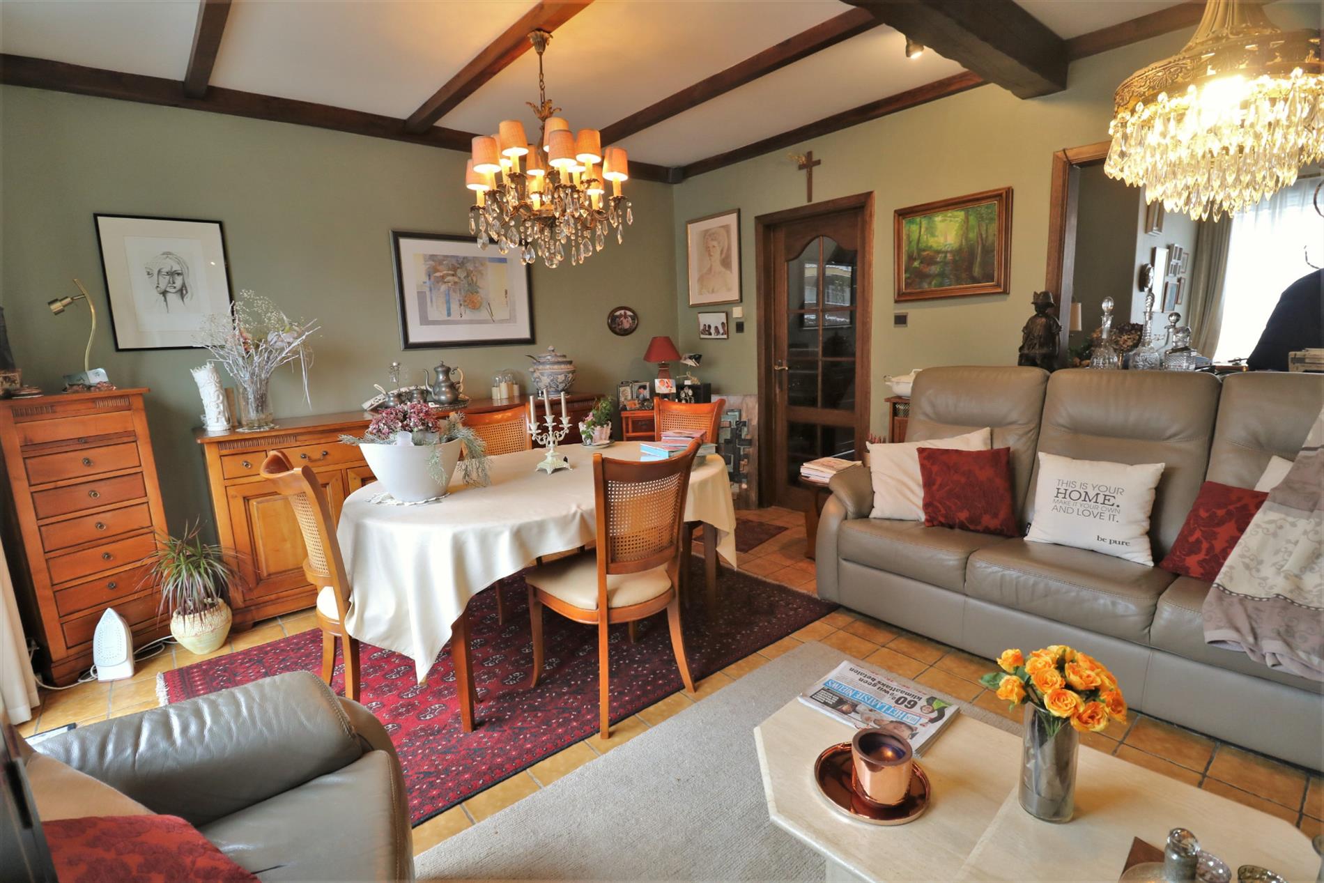 Gelijkvloers: inkomhal, gezellige leefruimte met half-open keuken en gastentoilet;