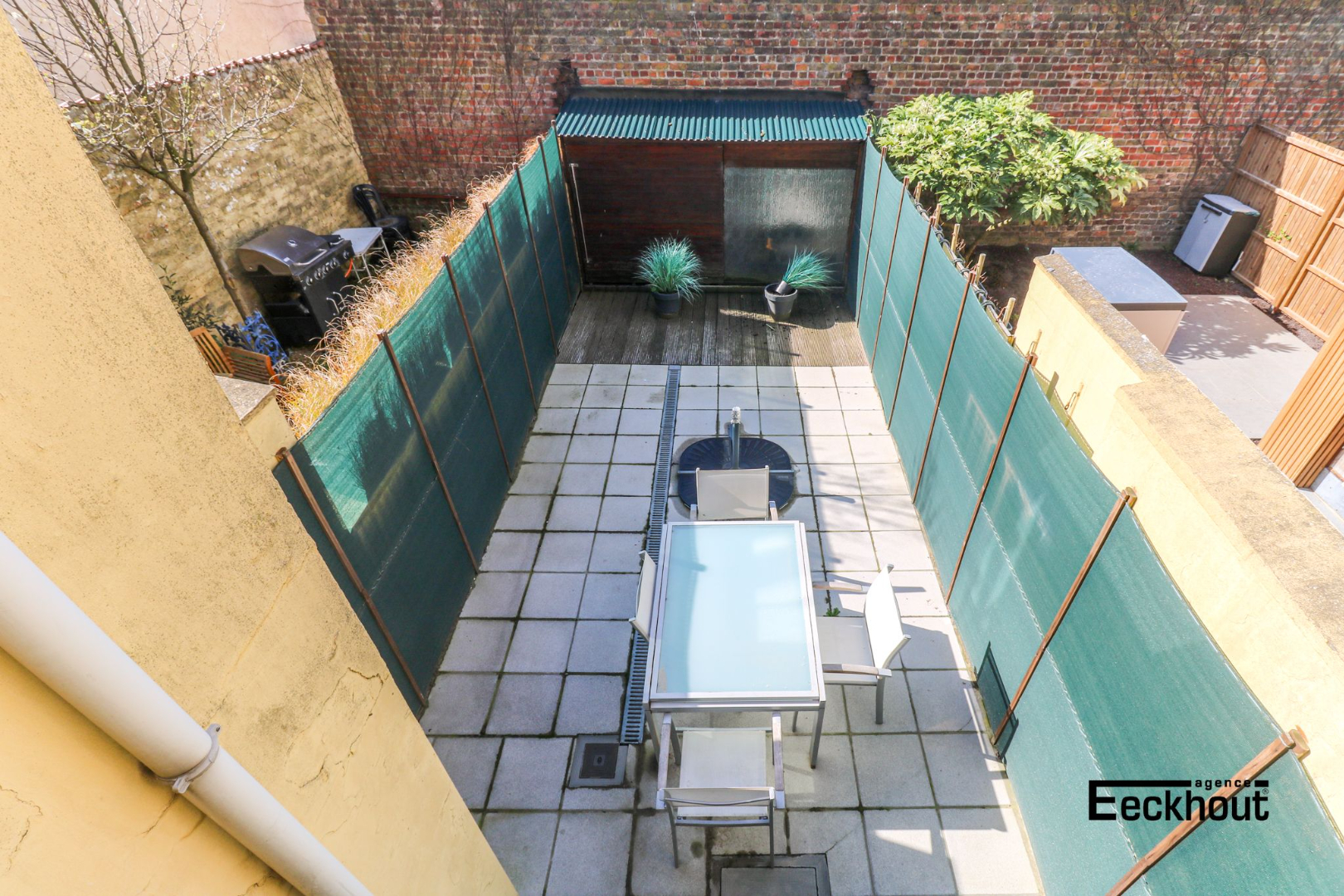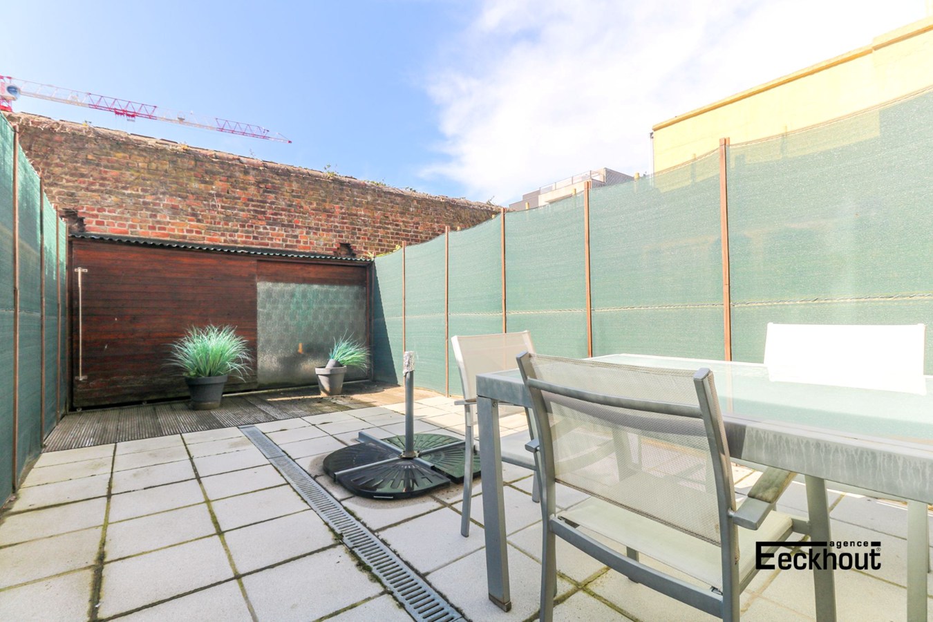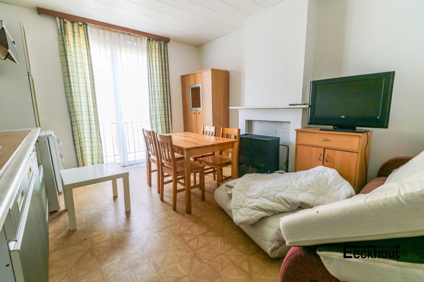 - Gelijkvloers: inkomhal, leefruimte met open geïnstalleerde keuken, badkamer met douche en toilet en zonnige koer;