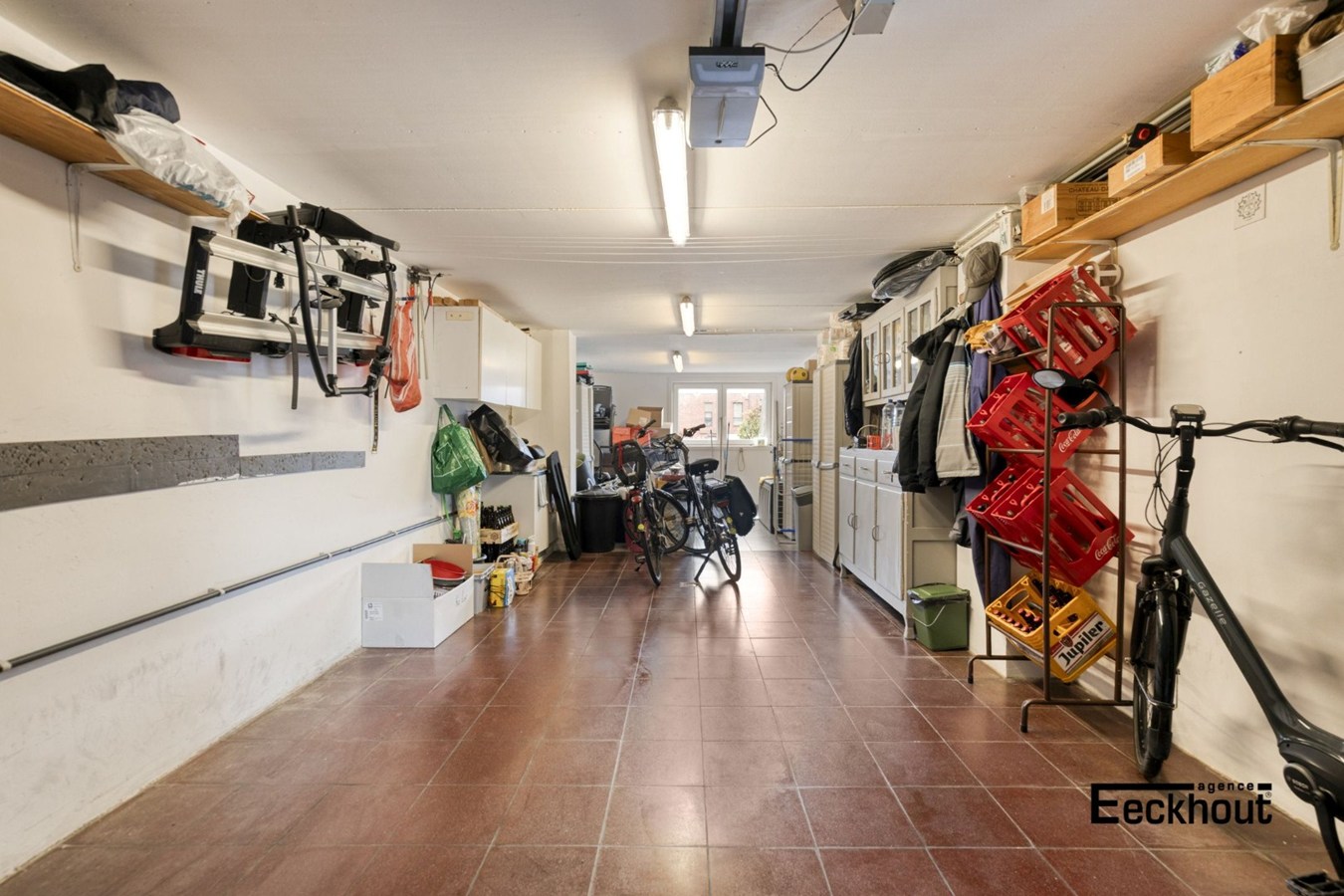 - Gelijkvloers: oprit voor 2 auto’s, inkomhal, ruime wasplaats/berging; dubbele garage met directe toegang tot de mooie tuin met tuinhuis.