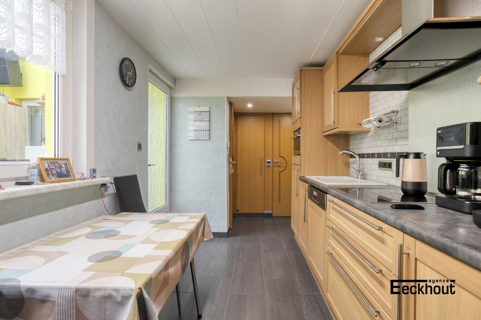 Indeling van de woning: gelijkvloers: salon met eetruimte en afzonderlijke keuken en badkamer met douche, lavabo en wc, terras en extra berging